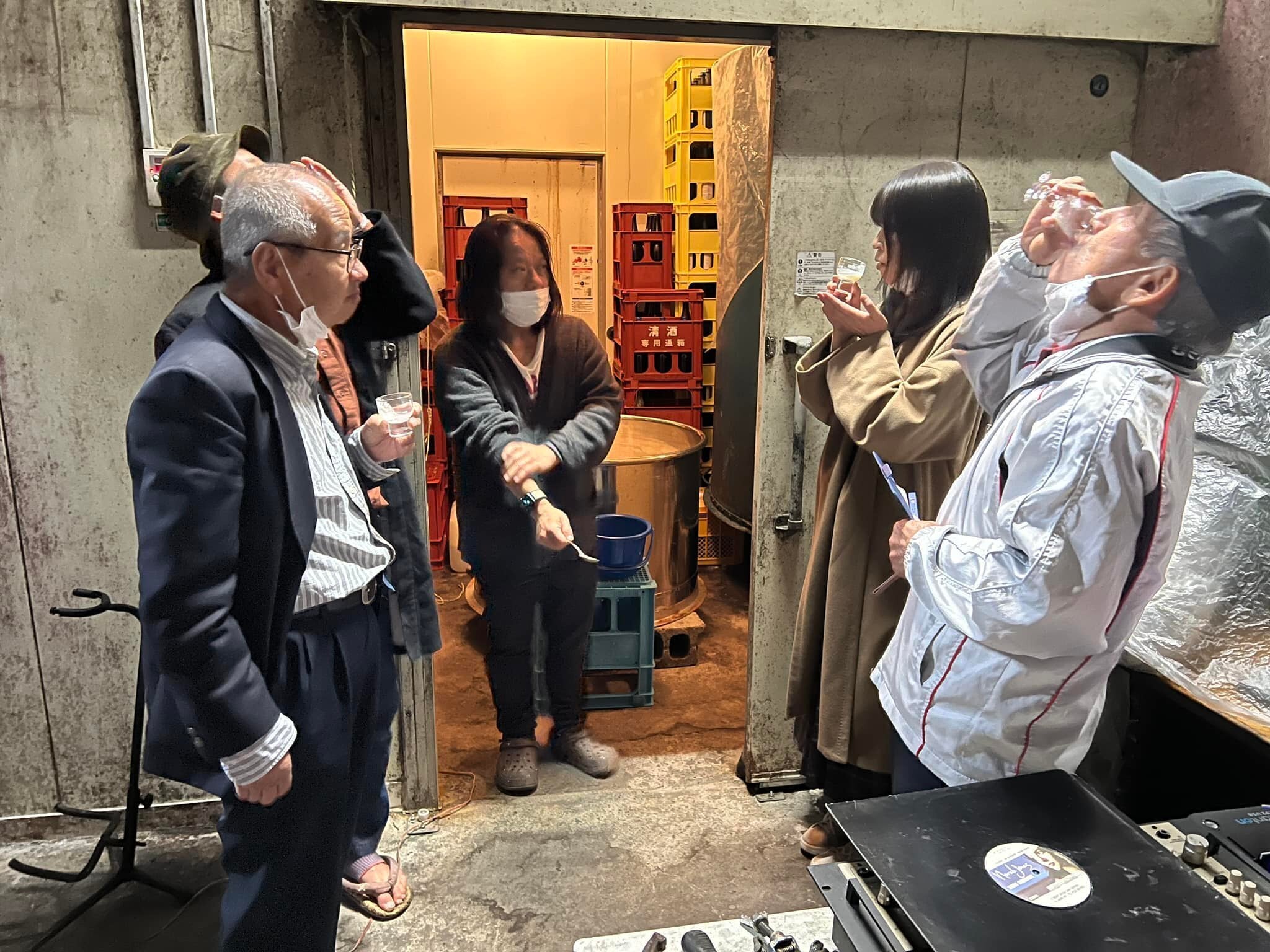 三芳菊酒造株式会社代表取締役・杜氏 馬宮さんを囲んでもろみ酒を試飲