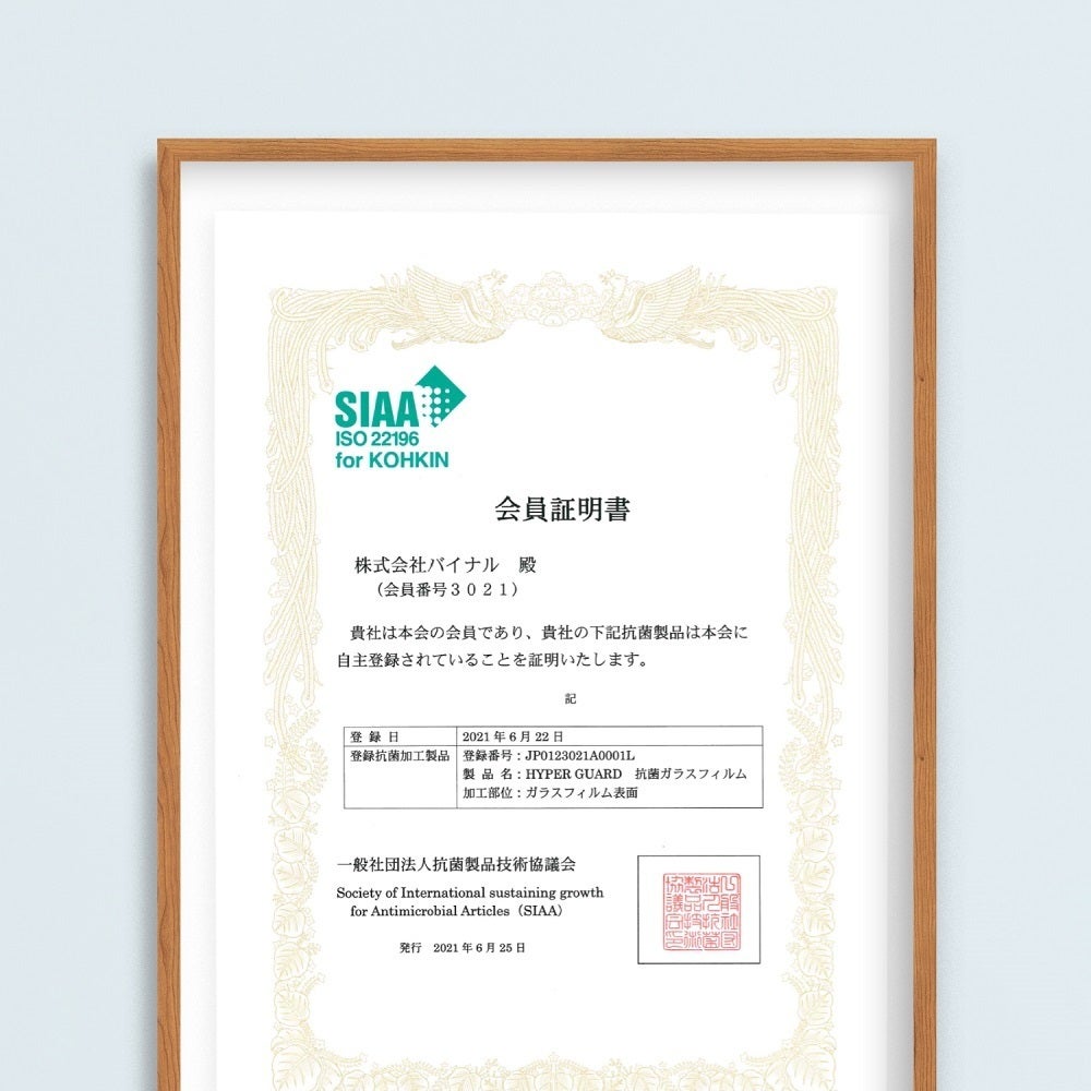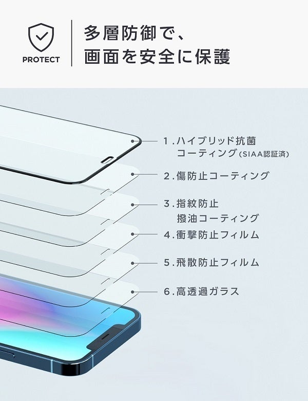 頻繁に使うスマホだから、液晶保護フィルムも抗菌にして、SIAA認証を取得。