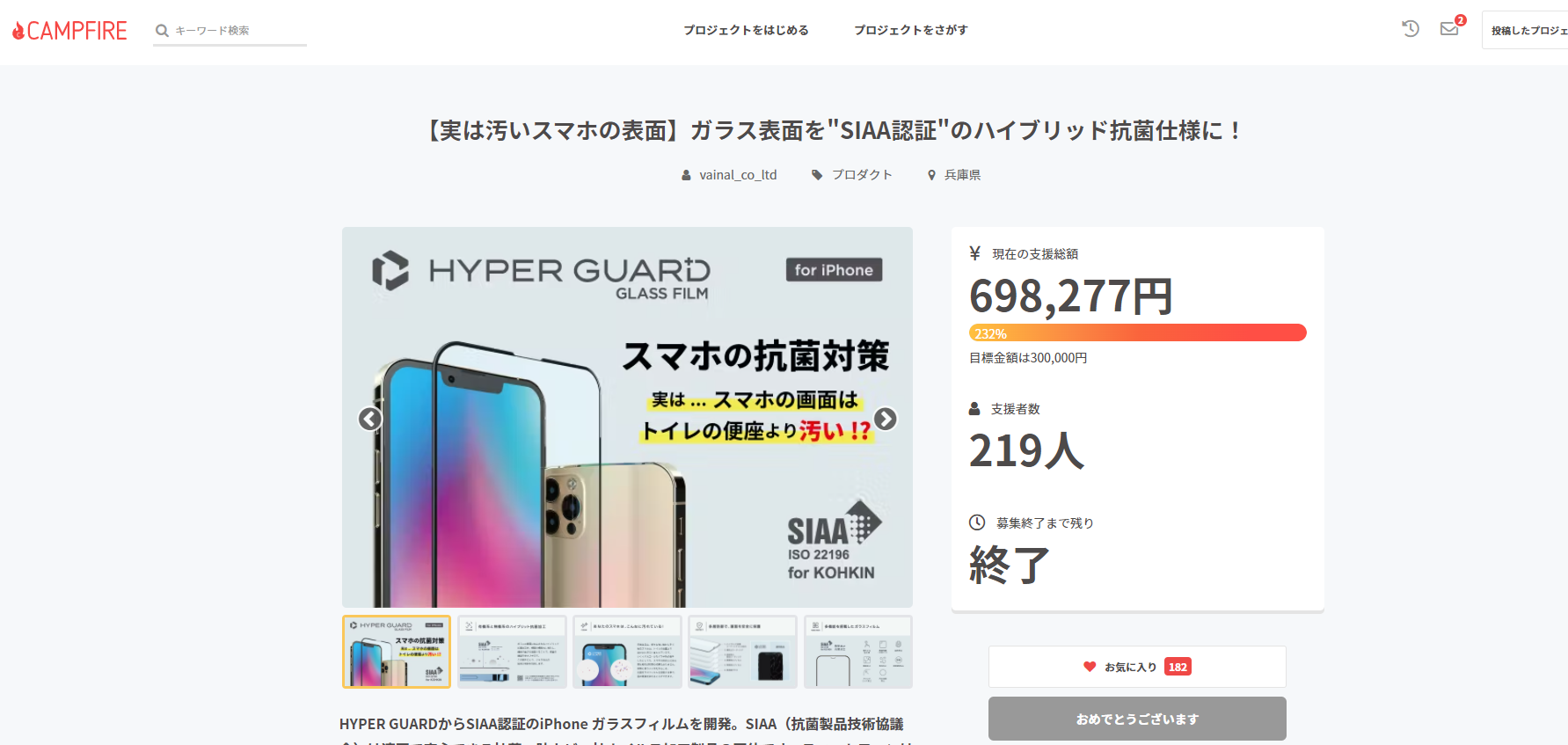 特にスマートフォンは身近な物で一番触れる事が多く、いろいろな物を触った手で触れるので菌が増殖しやすいと言われています。そんなスマホにも抗菌対策が有効だという事が分かり、今回のプロジェクトを立ち上げました。