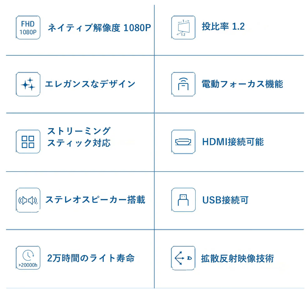 「いつもと少し違う生活を送ってみたい」「初めてプロジェクターを手にしたい」「長く使えて経済的な製品が欲しい」と考える方に優しく寄り添うプロジェクターです。