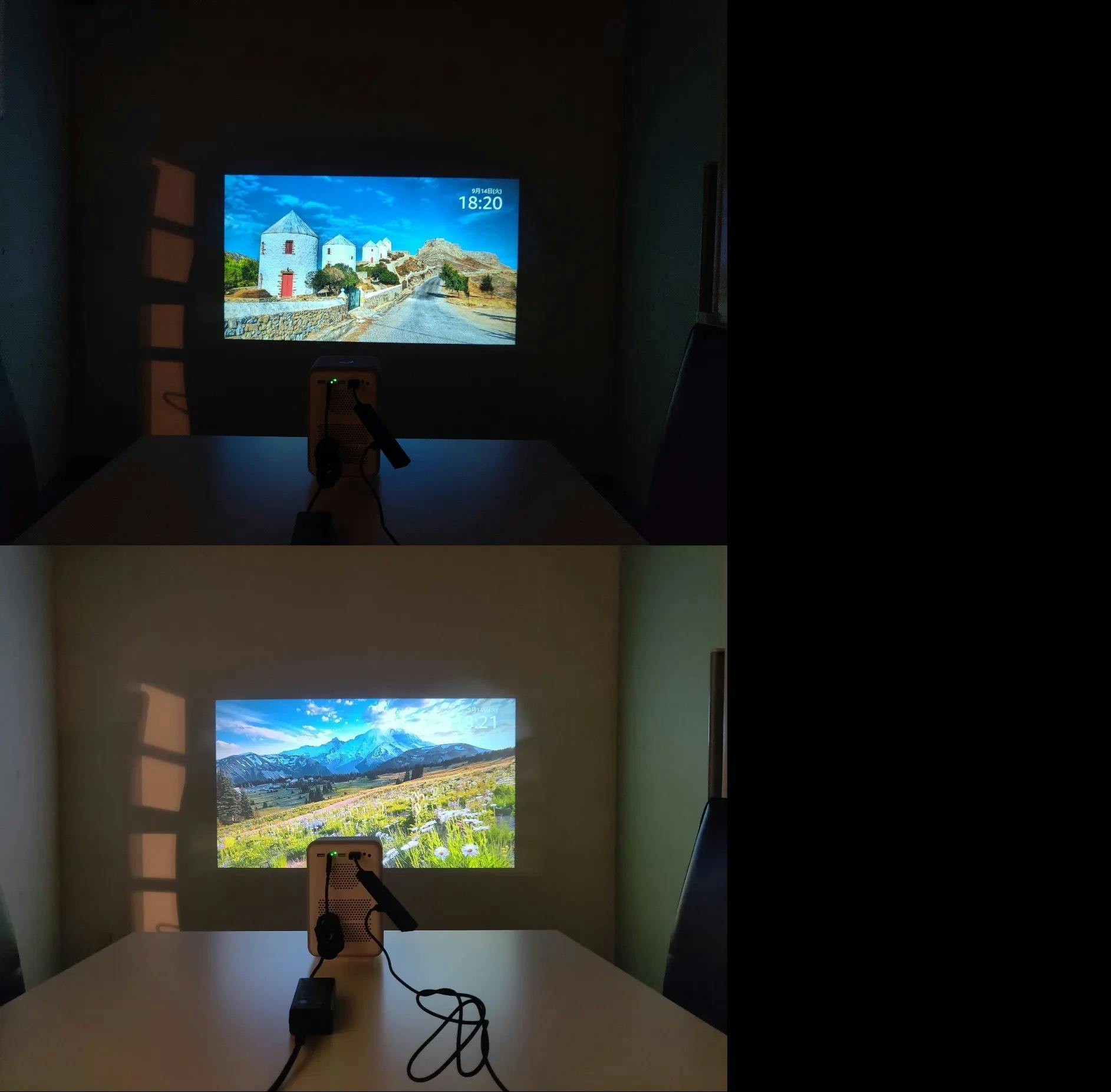プロダクトの最大の特徴は1920x1080のフルHDで鮮明な画像をスクリーンの端から端まで見られること。均一光源で、画面の中央が明るいだけでなく、四方に黒い角がないため映像の世界観に入り込める没入型のプロジェクターです。