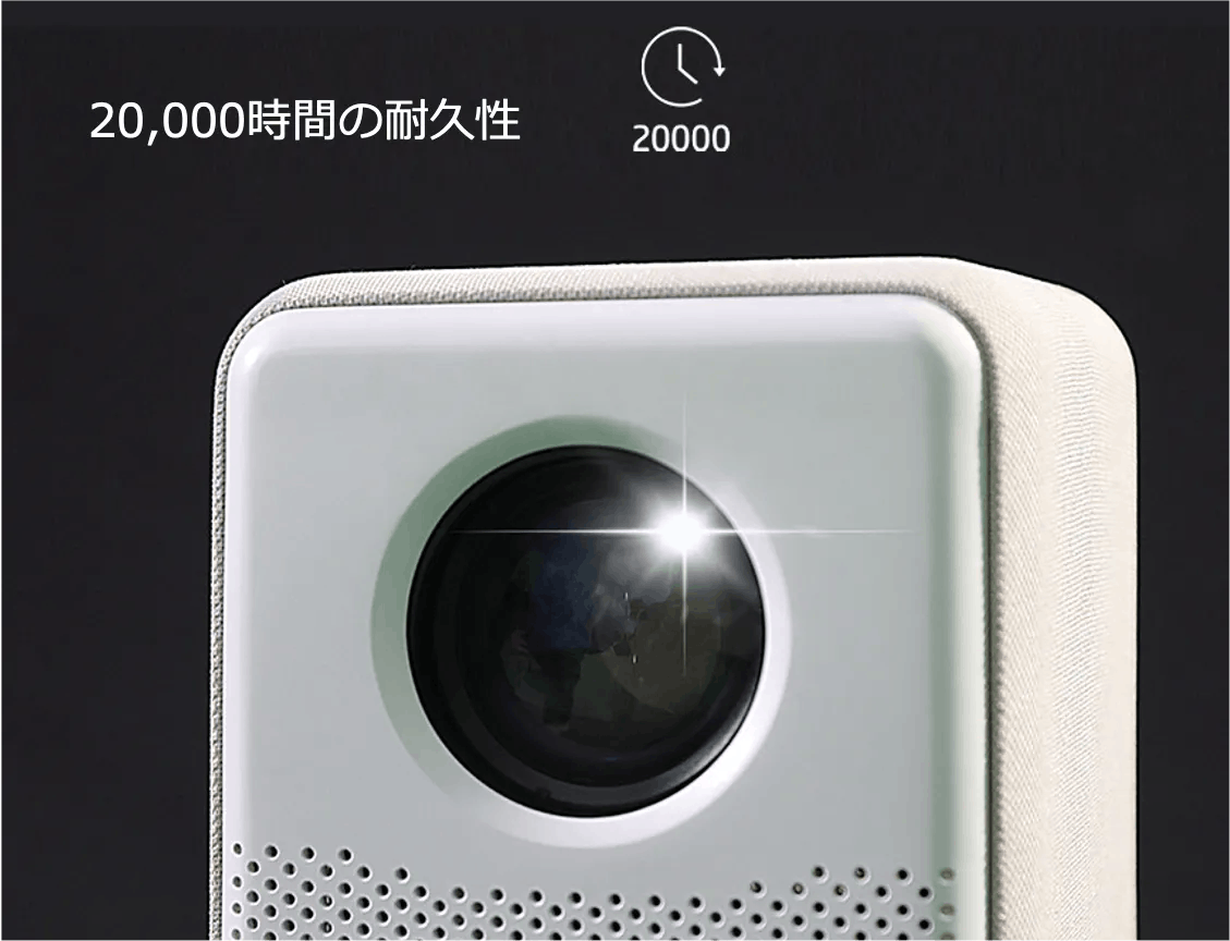 CC200はLEDライトを使用することで20,000時間の耐久性を実現。毎日2時間稼働させても、10,000日(約27年!)使用することができるのです。一方、一般的なプロジェクターはLEDライトではなく水銀ランプを使用し、平均寿命は10分の1の2,000時間。毎日プロジェクターを2時間稼働させると、1000日で寿命を迎えてしまいます。