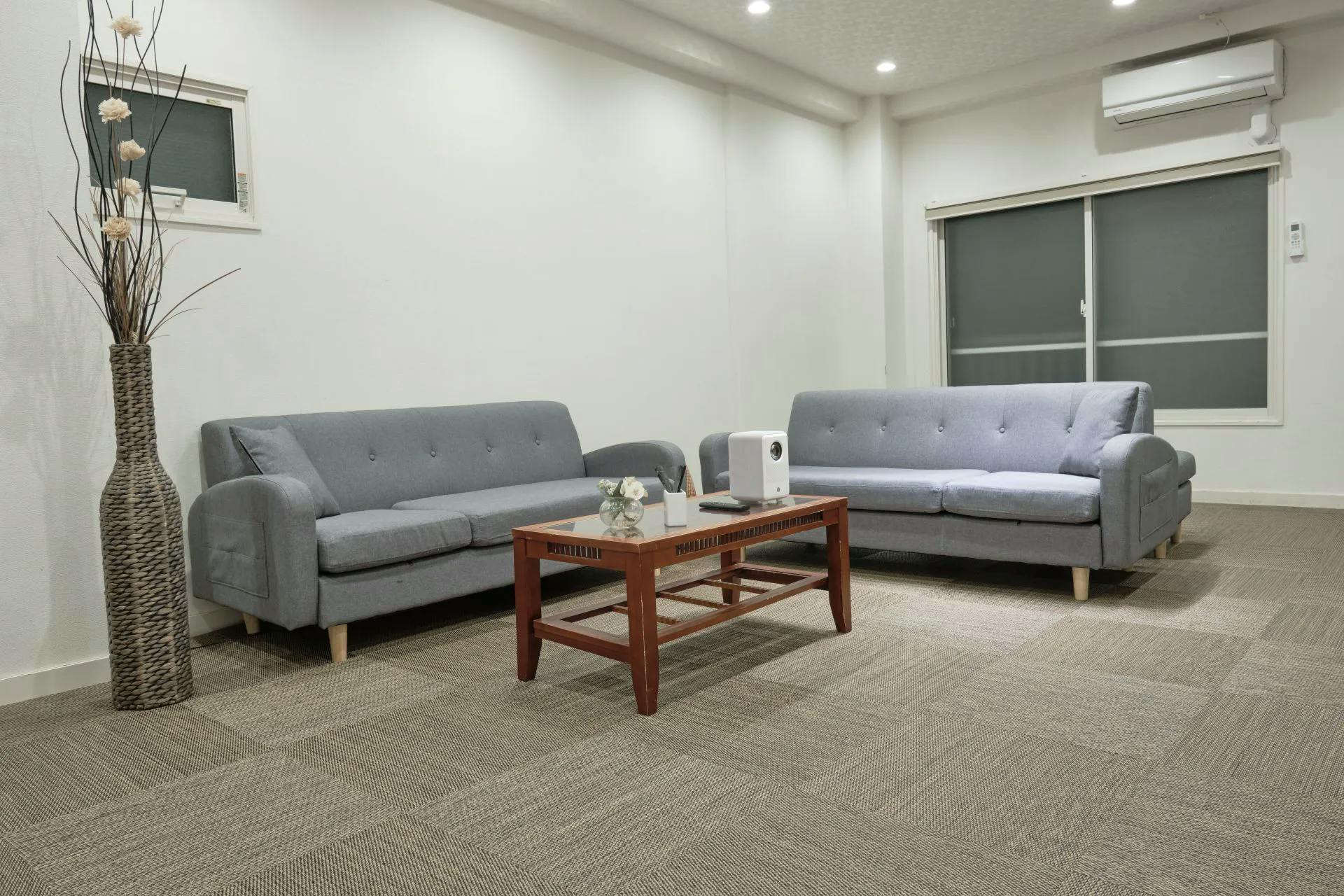 もちろん、スペースがなくても最小1.3mの距離で十分に綺麗な映像をご覧いただけます。こちらは広さ5畳ほどの個室会議室。約1.3mの投写距離で写した映像ですが、隅々まではっきり投影します。