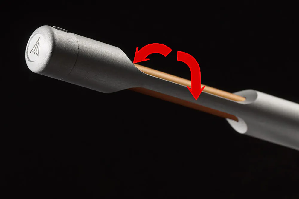 切り欠きから見える中軸部分を回転させて使うのですが、こういった使い方をするペンは初めてという方も多いはず。