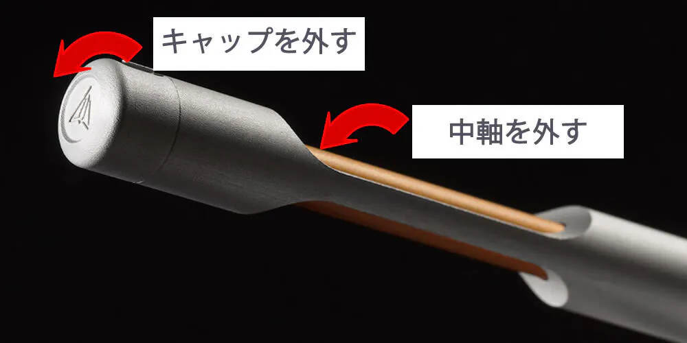 キャップをまず外し、次に中軸を外します(どちらもスクリューするだけ)。