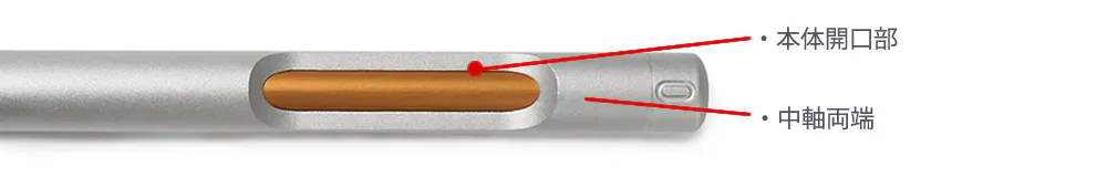 ペン利用時に、この開口部に人差し指の付け根部分がやさしくフィット。