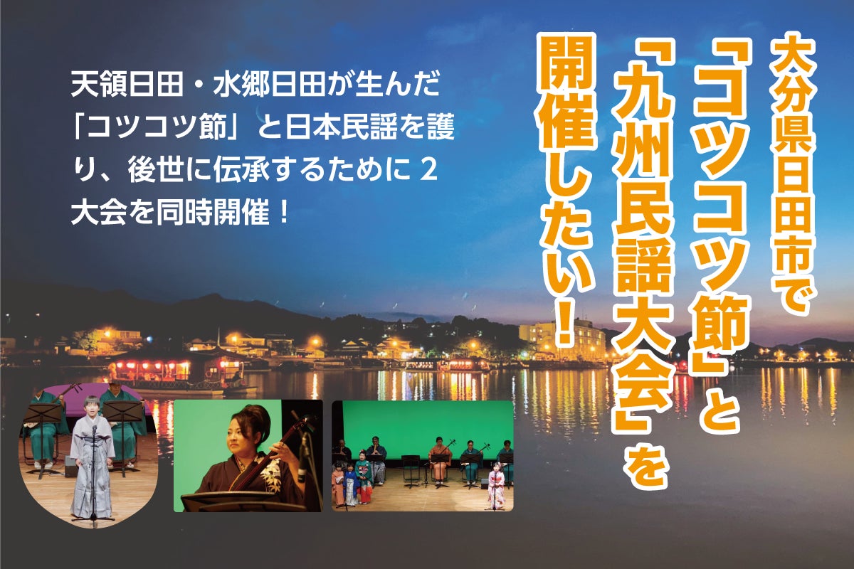 民謡に触れてもらう機会を増やしていきたいと、九州各地で歌い手として活動するメンバーが集まり、今回「九州民謡王座決定戦」の開催と、日田伝統の民謡「コツコツ節」の全国大会を開催したいと思っています。