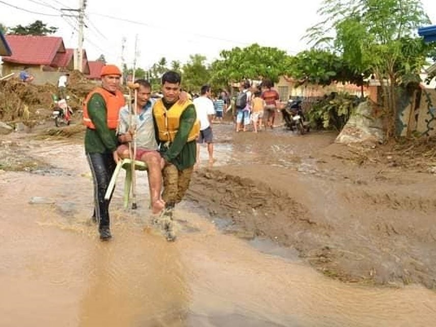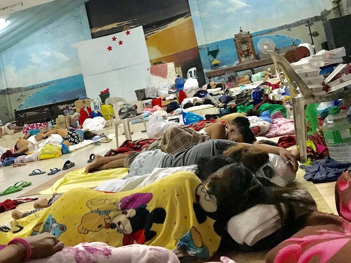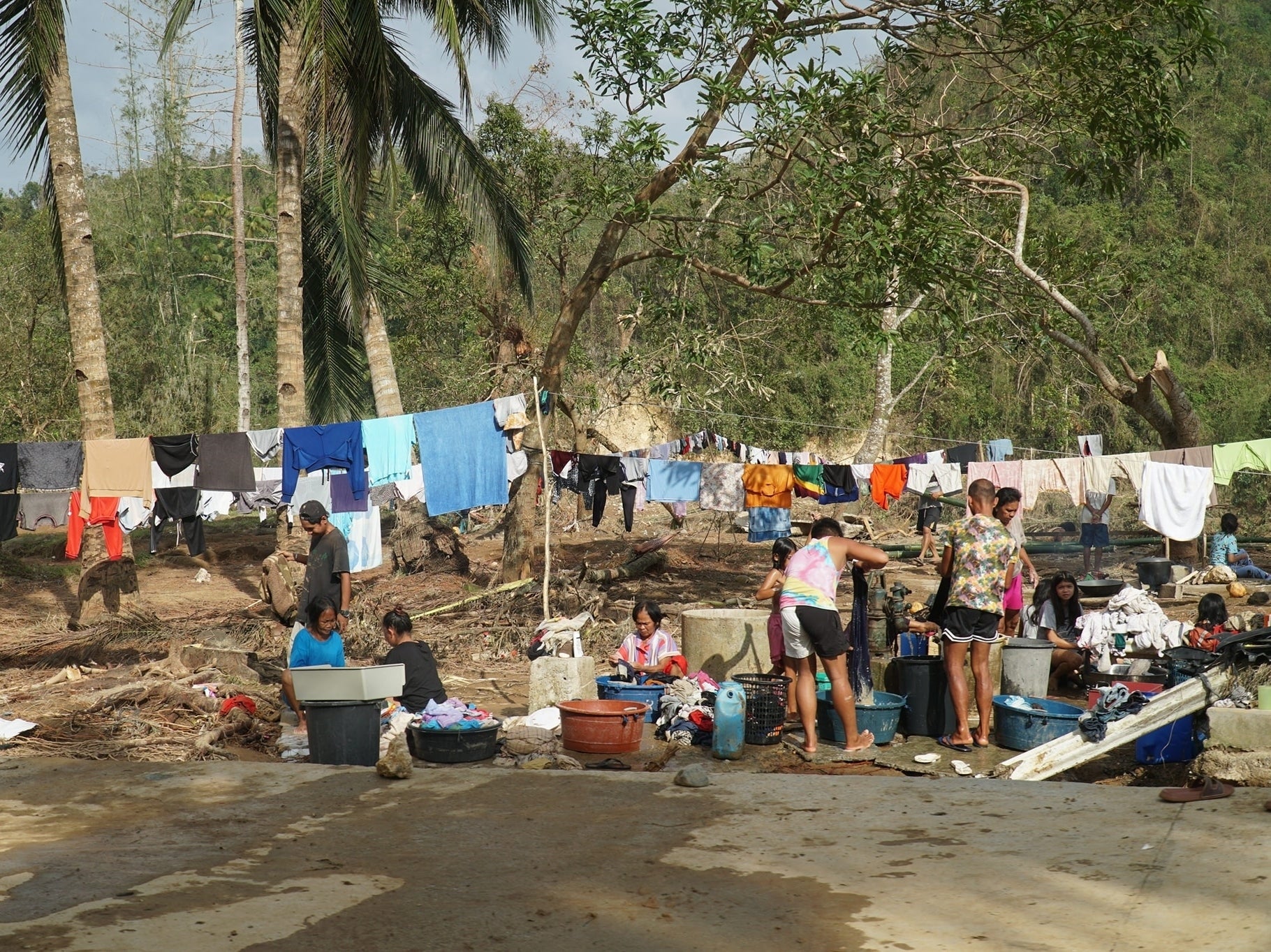 私たちが支援している地域の小学校に避難所が設けられました。そこには台風の襲撃に対し、わずかなものをなんとか持ち出し逃げてきた、泥だらけの人々であふれています。