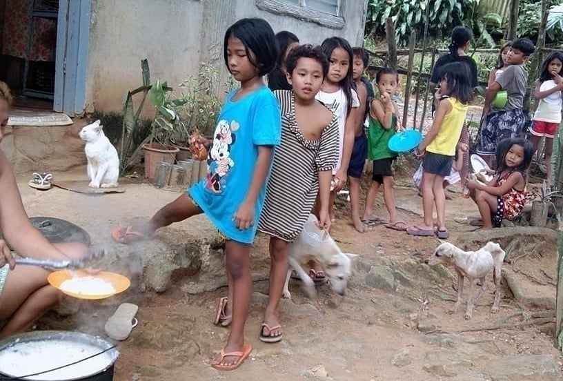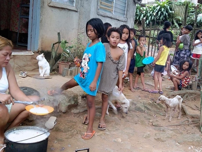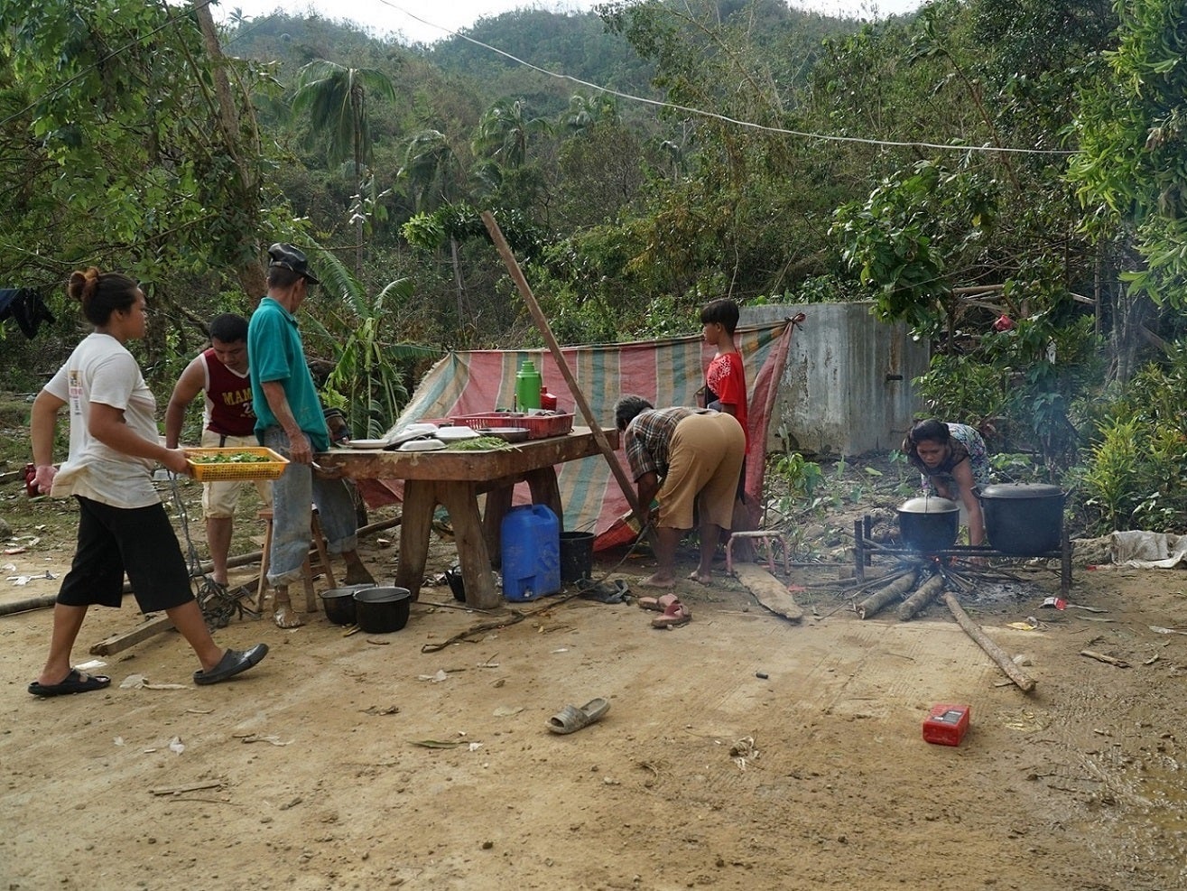 台風の悪夢に陥り、心身共に疲弊し、飢えに苦しむ山岳スラムの被災者のために、現地ボランティアの協力で炊き出しを行いました。
