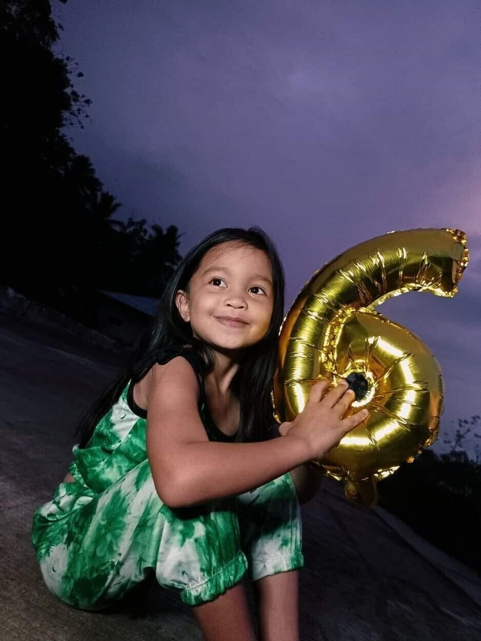 彼女の特別な今日を、6歳の誕生日を祝うために、家族があらかじめ買って用意してくれていた「6」の文字の風船の飾りでした。