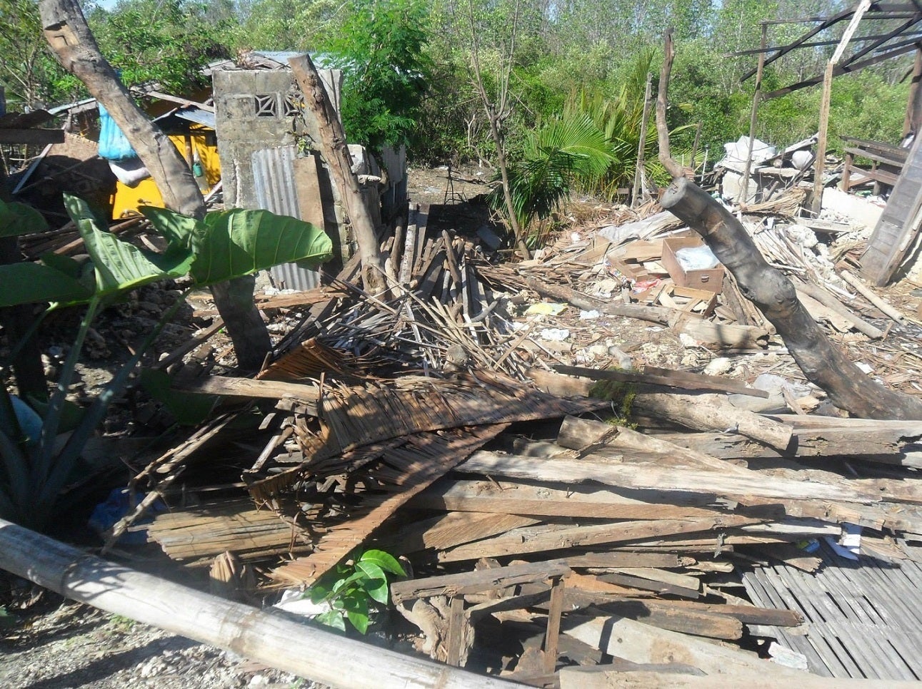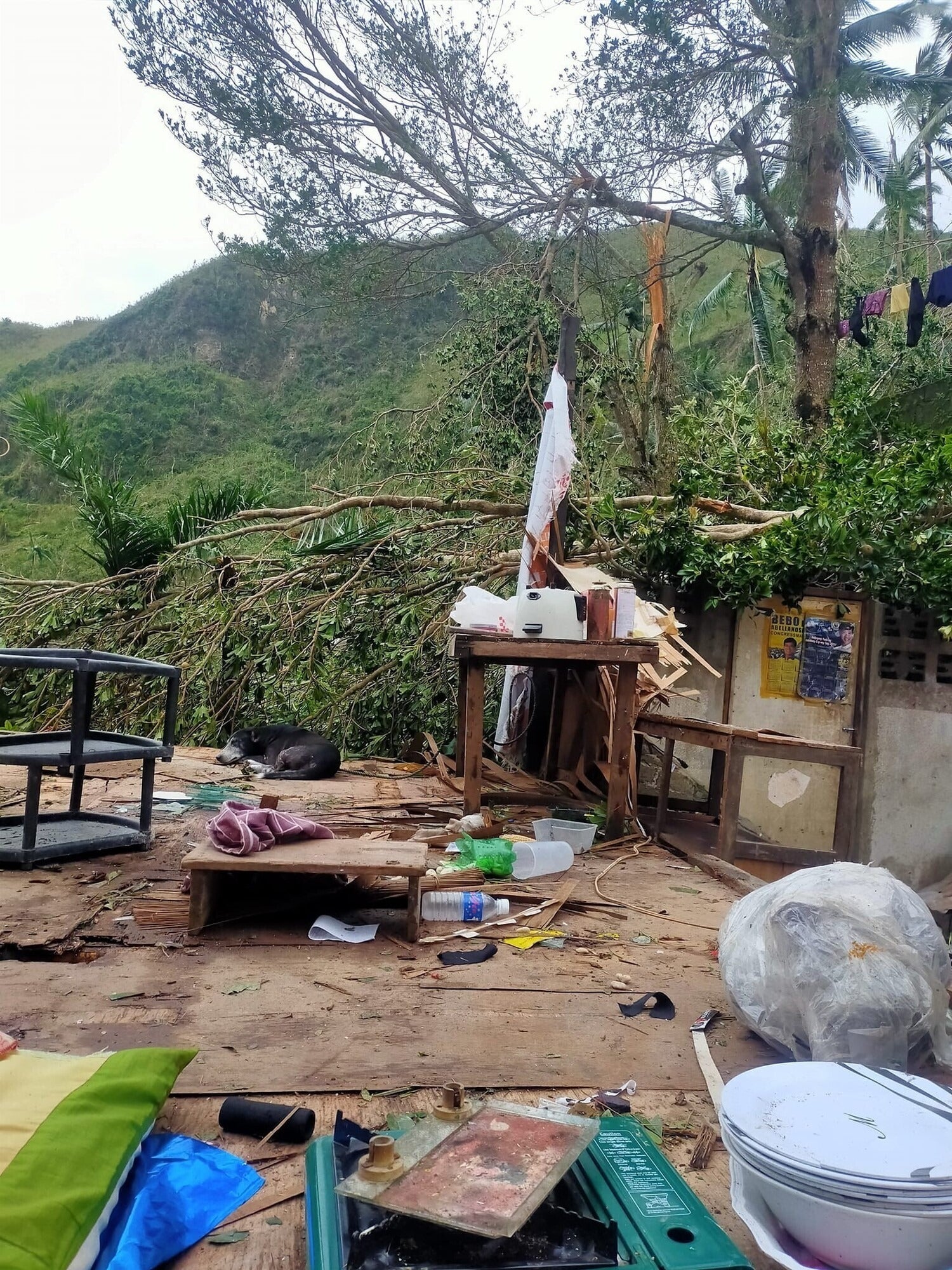 町から離れた山岳地帯であるため、充分な避難所も準備されず、人々は屋根や壁のなくなった家で、寝泊まりしています。また、台風で山道が崩れてしまっため、町に買い物に行くこともできず、政府からの支援物資等も届かず、被災者の救援活動は滞り、孤立状態に陥っています。停電と通信障害で連絡さえも遮断されています。