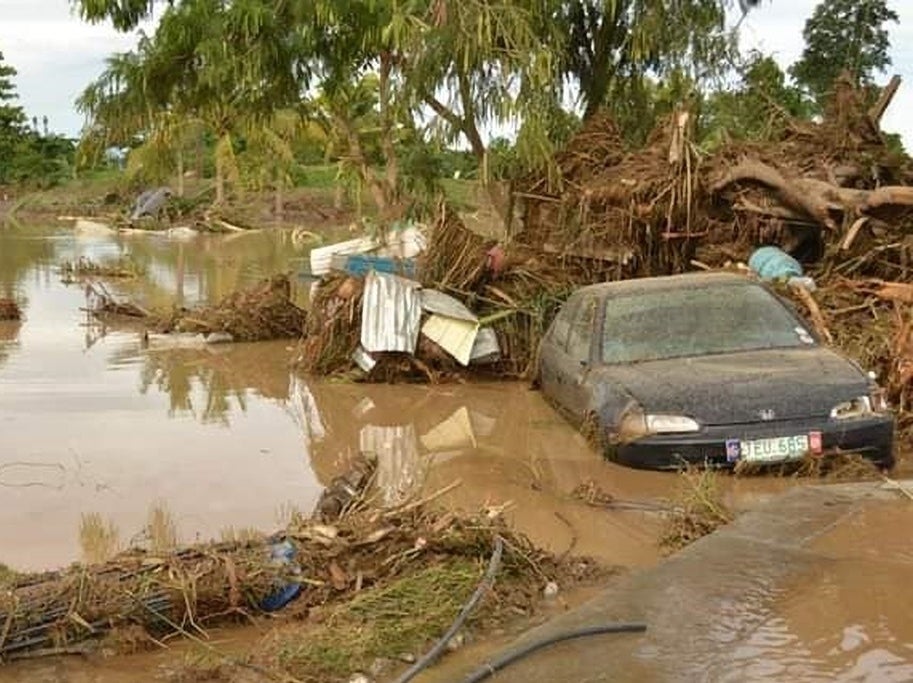 郊外の通りも台風による洪水と、折れて倒れた木々や倒壊した建物のガレキで危険な状態です。