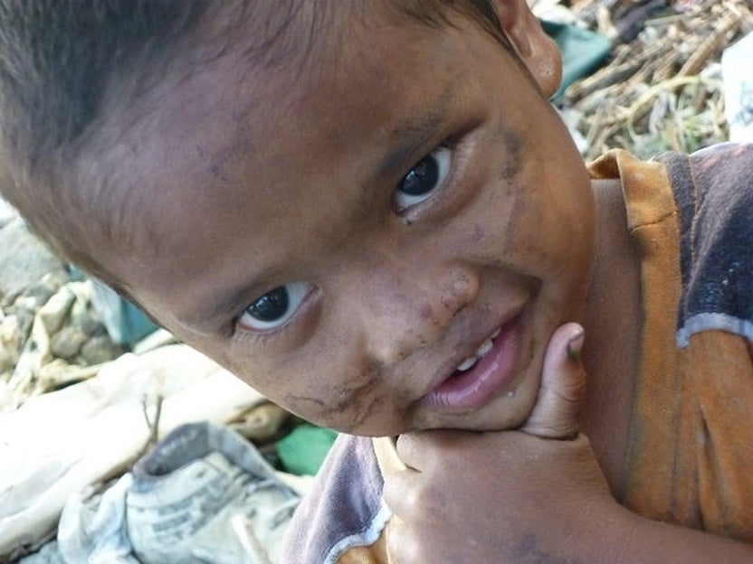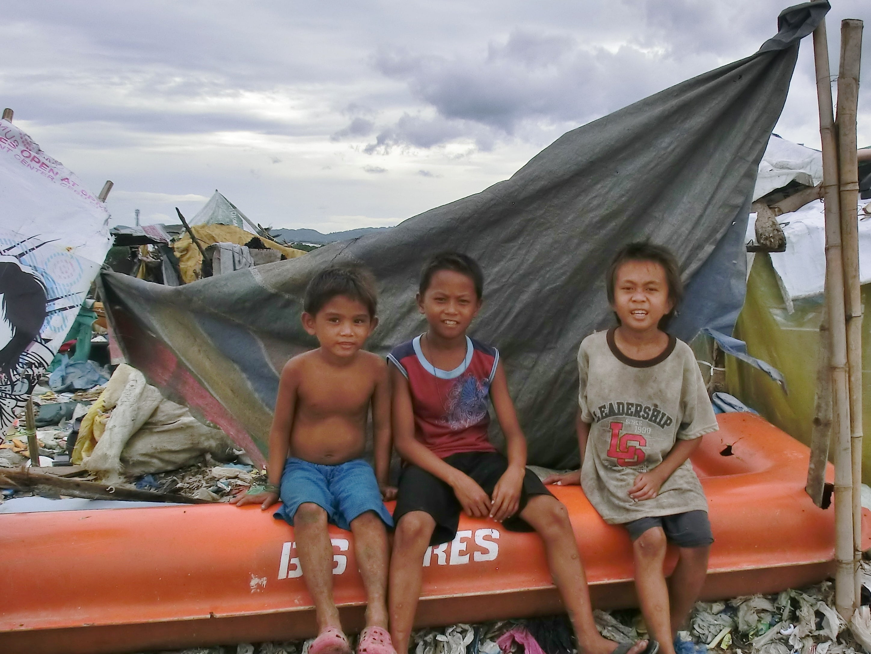 とてつもなく大きな台風により被災し、たくさんの大切なものを失い、飢えと不安の中、それでも日々をなんとか生き抜いていこうとしているスラムの人々の命を支えるため、子どもたちの未来への夢と、その純真な笑顔を守るため、