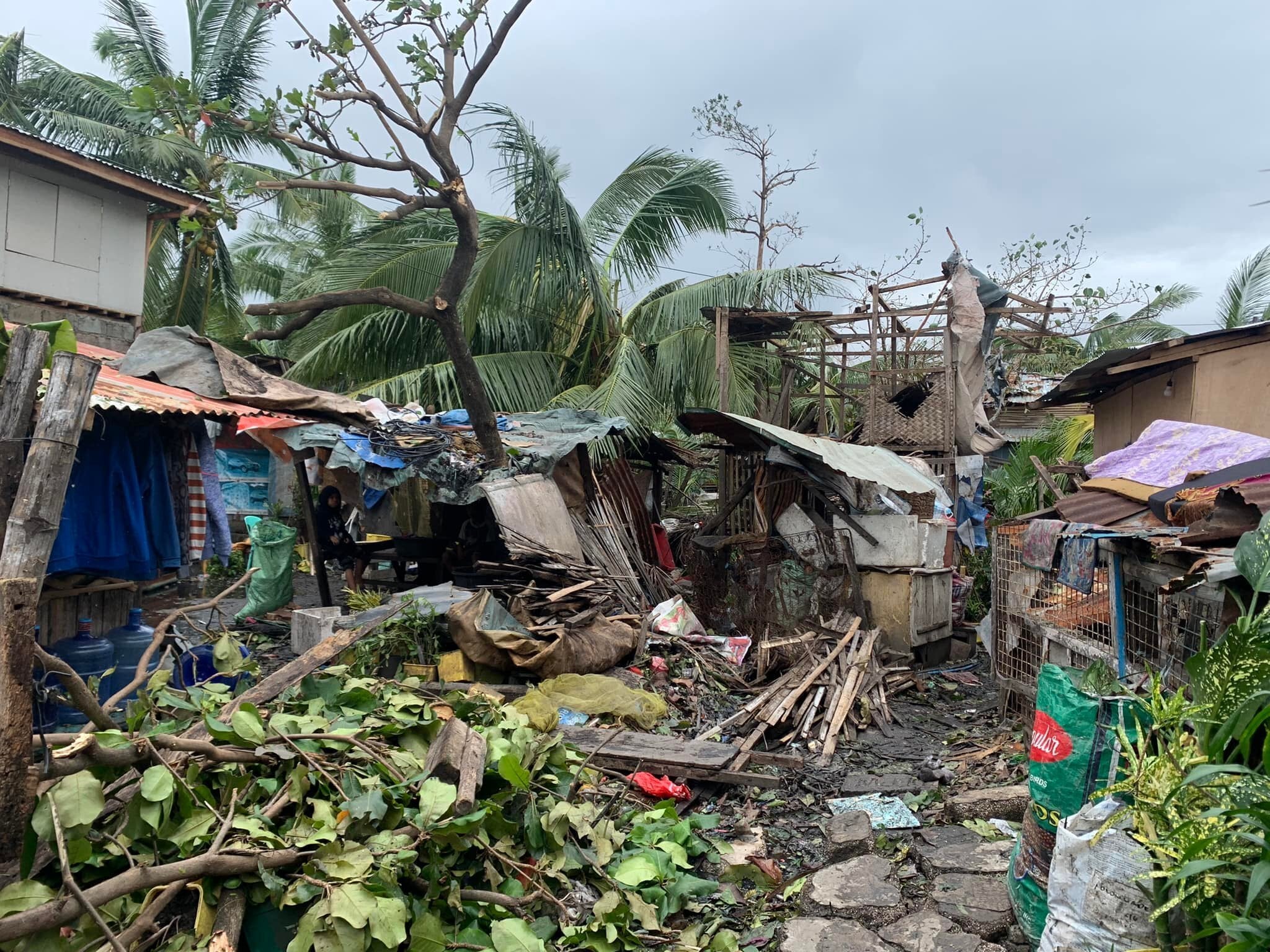 私たちがスラムの支援活動を行っているセブ島は、その直撃を受けました。建物倒壊、地滑り、洪水、停電、断水、通信障害などの被害が発生しており、村の家のほとんどが全壊した地域もあり、水・食料・避難所などの支援を必要としています。