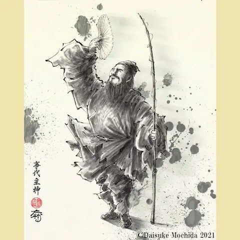 薩摩町郷土誌(平成10年5月31日発行)を改めて紐解きますと、南方神社(旧諏訪神社)の祭神は建御名方命(たけみなかたのみこと)の次に、事代主命(ことしろのみこと)が併記されています。(記載の順序は、建御名方命(大国主命の子(事代主命 の弟)) 、事代主命(大国主命の子(建御名方命の兄 )です。 )事代主命は恵比寿(えびす)様、大国主命は大黒(だいこく)様としても庶民から慕われていますが、建御名方命 について、このように慣れ親しまれた呼び方を聞いたことは寡聞にしてありません。また、さつま町永野の南方神社では、祭神の記載順序がなぜ兄、弟の順序ではないのかを不思議に思いました。以下は恐れ多くも筆者(この神社の総代のひとり、書記会計係の高橋健二)の勝手な想像と申しますか、妄想に近い想像による解釈を記載させていただきます。大国主命は国づくりの大業を遂げられた神様ですが、農耕・漁業・殖産から医薬の道まで、私たちが生きてゆく上で必要な様々な知恵を授けられ、多くの救いを与えて下さったことに、この慈愛ある御心への感謝のこころから大黒(だいこく)様と慕われるようになったものと思われます。大国主命は本来、慈愛に満ちた国造りを行いたかったのに、乱暴な大国主命の兄の八十神(やそがみ)たちから仕掛けられた戦いに身を投じ、それによってこの国を広げたこともあり、天照大御神(あまてらすのおおみかみ)から、「これからは慈愛に満ちた国づくりを行うから国をお譲りなさい。」と諭されて、願ってもないことと思われたのではないのでしょうか。そして、天照大御神から、「これから後、この世の目に見える世界の政治は私の子孫があたることとし、あなたは目に見えない世界を司り(つかさどり)、そこにはたらく「むすび」の御霊力によって人々の幸福を導いて下さい。」とのお言葉の通り、今に生きる私たちの目に見えないところで遠い昔から見守ってくださっているのではないでしょうか。(参考:出雲大社ホームページより(https://izumooyashiro.or.jp/about/ookami)) 兄の事代主命は、父の大国主命から国譲りについて判断を委ねられた際に、もうその瞬間に大国主命の意を全て理解して、あっさりと承諾したのかも知れません。一方で、弟の建御名方命はいったんは天照大御神の使者からの申し出(命令)に対して、武力で抵抗を試みています。最後には打ち負かされて国譲りに承諾をしていますが、兄の事代主命とは対照的な対応であると思われます。大国主命は或いはこの兄弟のそれぞれの性格だけではなく、どのような判断を下すのかまでを全てご承知のうえで、自らの判断を下されることなく、子たちに国譲りの判断を委ねられたのではないでしょうか。さつま町永野の南方神社で祭神の記載の順序が建御名方命 (弟)、事代主命(兄)となっていることについて、あくまでも想像ですが記載させていただきます。もともと、薩摩の国では野武士(普段は百姓の身分でありながら、戦(いくさ)が起こると武士として身を投じる)の文化と申しますか、古くからの伝統でそのように考えるのが当たり前のこととする慣習がございます。(近代においては、西南の役(せいなんのえき)で西郷吉之助(さいごうさぁ(本名は西郷吉之助、西郷隆盛は父の名前)が、自らの意思では無いにでも関わらず、明治維新の前の時代の元の武士たち(野武士を含む)が生活に困窮していたことを不憫(ふびん)に思われて、「したくもない戦ですが、最後は寄り添って参ぜましょう。」という慈しみの心から参戦したものではないかと、そのように解釈をしております。)地域的な背景によるものと思われますが、そのような慣習がございまして、この南方神社においても或いは、武力に長けた神様を最初に祭神として崇め奉る(あがめたてまつる)ことになったのかも知れません。最後にもうひとつ、この投稿の冒頭で「建御名方命について、慣れ親しまれた呼び方を聞いたことは寡聞にしてありません。 」と記載しました。これも勝手な解釈となりますが、この日本国においては、古代より争いごとを好まない生き方を習わしとしてきたのではないでしょうか。大国主命(慈しみの溢れる神、そっと寄り添って目に見えないところから見守って下さる神)の子として兄弟でありながら、建御名方命は恐らくは武に長じた神様であられたことと想像いたしますが、国民の習わしには必ずしも馴染まないため、親しまれた呼び方をされないのではないかと、このように想像をいたしました。長文で申し訳ございません。イラストの写真は、Art Mochida Daisuke(八百万の神の絵師 持田大輔)様のホームページ(https://peraichi.com/landing_pages/view/mochidadaisuke)より引用させていただきました。