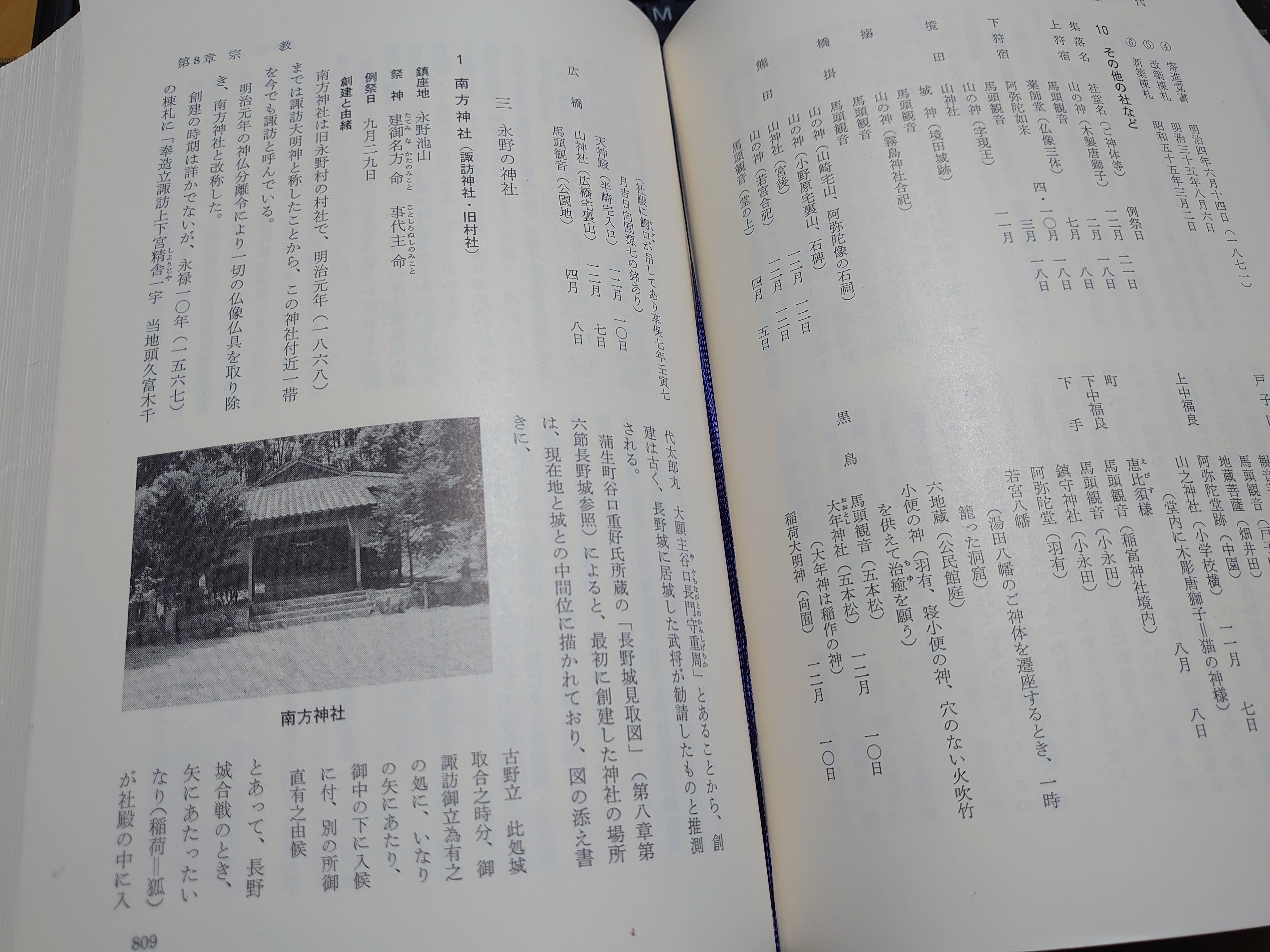 さつま町郷土誌(平成10年5月31日発行)を紐解いてみますと、南方神社(みなかたじんじゃ)は旧永野村の村社で、古くは諏訪大明神(すわだいみょうじん)と称していたようです。そして、明治元年(1868年)の神仏分離令により一切の仏像仏具を取り除かれたのち、南方神社と改称されたようです。長野城合戦(現在は永野、当時の長野における合戦(永禄12年(1569年)))の後に、長野城を支配することになった島津氏が現在の場所に神社を移したと想定されており、創建は戦国時代にまで遡ります。長野城の戦歴を調べますと、大口城(おおくちじょう(現在の伊佐市にあったとされる城))に籠る菱刈(ひしかり)・相良氏と提携していた渋谷一族が守っていた長野城を、島津氏が激しく攻撃したとの記録があります。武将と神社との関わりについても興味深く、まだまだ調べる楽しみがありそうです。