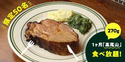 リターン内容:「高尾山(ポークステーキ270g)」を1ヶ月間無料で食べ放題