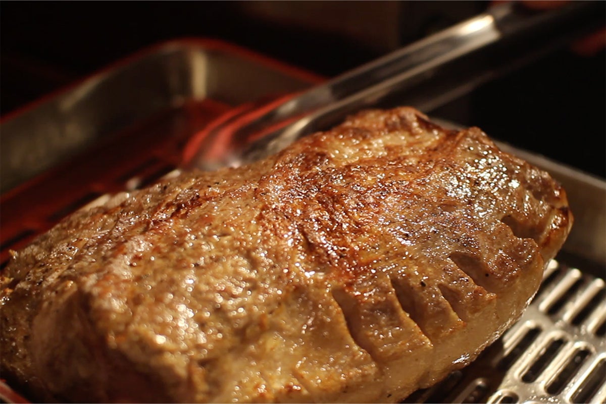 徹底的に温度管理をして低温調理しています。火が入りすぎるとすぐにパサついてしまう、かといって生だと危険すぎる豚肉は何回も何回もあらゆる温度帯、時間を試しながら完成させました。生肉から仕上がりまで手間暇をかけた72時間工程の仕込み。独自の調理工程で肉汁を閉じ込め、最後に直火でカリッとクリスピーに焼き上げます。豚肉への情熱と火入れの技術が生んだ「ポークステーキ」をぜひ体験して頂きたい。妥協のない工程で肉質と製法にこだわり尽くした仕上がりは、噛むほどに溢れる肉汁、外はカリッと香ばしく中は、飲めるほど柔らかさは、一度味わうと忘れられない至高のポークステーキです。