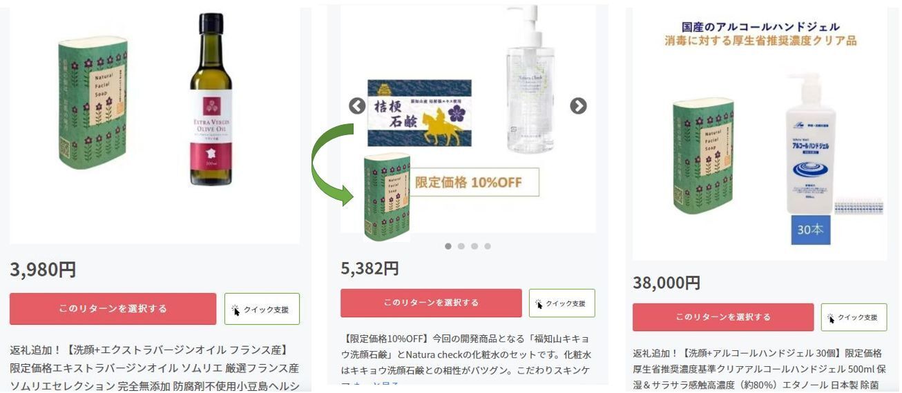 (株)Mind Leafが販売する既存スキンケアブランドのNatura Check各製品や、オリーブ関連の製品についても、返礼品としてすべてお得な価格で設定をしております。