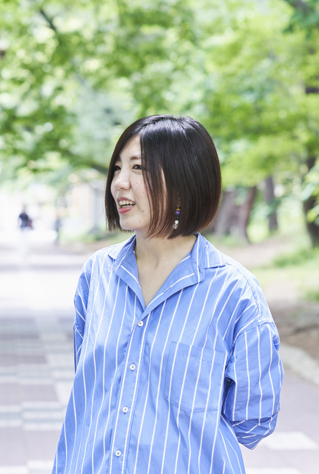 国立市在住。公共ホール職員として劇場と地域の文化事業に携わる。仕事を通し、自分の日常生活と住む街の関係性について興味を持ち始める。女子校、ミッションスクール、寮生活などの経験から学生時代より自然とフェミニズムを意識してきたことも相まり、本プロジェクトに参加。さまざまな立ち位置の人が同一線上で言葉を交わし合えることに魅力と期待を感じている。子どもの頃から一番好きな色は青。趣味は音楽、ピラティス、プロ野球観戦。