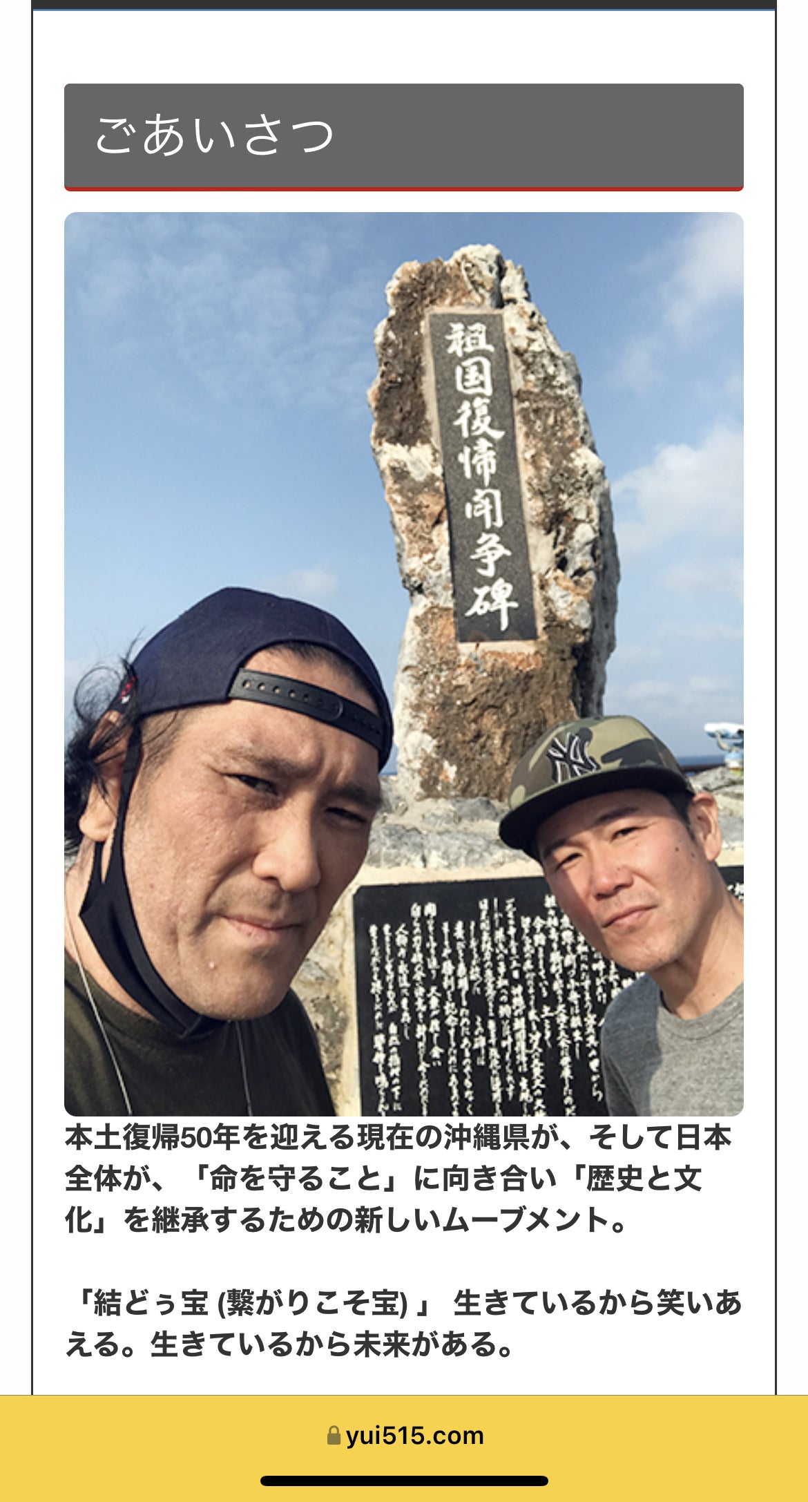 結515のメンバー応援ありがとうございます。実は、結515は私もお手伝いしているプロジェクトチームです。そのプロジェクトとは、2022年5月15日に本土復帰50年を迎える現在の沖縄県が「命を守ること」に向き合い「歴史と文化」を継承していきたいと始めた団体。「結どぅ宝 (繋がりこそ宝) 」 生きているから笑いあえる。生きているから未来がある。この結515は、実はお笑い芸人であるガレッジセールの「川ちゃん』も代表理事として活動しているんです。(私もリアル川ちゃんとは、このチームを通して出会いましたがTVで見たまんまの人でした)実は彼も、復帰っこ!(復帰の年に生まれた人のことを、沖縄ではそう呼んでます)この復帰っこと呼ばれる人たちが、中心となり頑張ってます。気になる方は、下のURLをクリックしてください。結515についてはこちらhttps://yui515.com/5月15日には、沖縄復帰50周年乾杯でギネスを狙おう『ちむどんどんこころおどる』が開催されます。14日、15日は奥武山公園、うみそら公園で515のイベントがあります。日本のウチナーンチュ、世界のウチナーンチュ、沖縄好きな皆さん!リターンのお宿宿泊を使って、その日にぜひ遊びにきてください。※今回、みなさん個人で支援してくださいましたが、私の判断で結515の企業支援にした方が少しでも結515を広げるお手伝いができると思い個人リターンなしで承諾をもらっております。