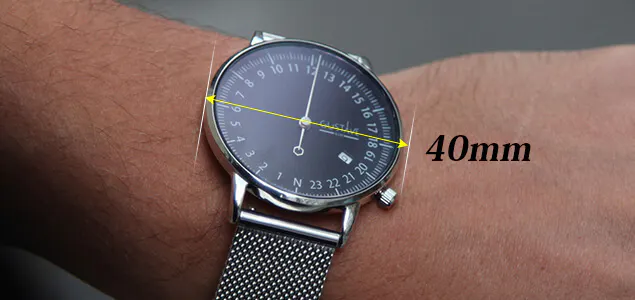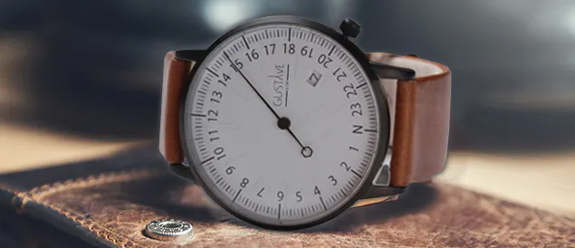 時計のフェイスには24時間のインデックス、日付表示、そして針一本。