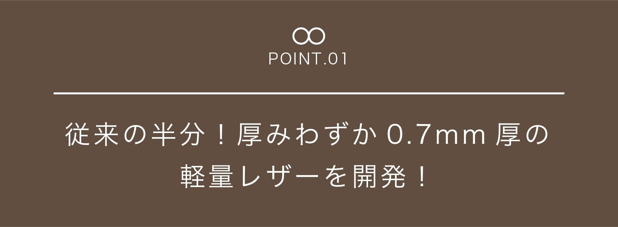 今までのレザーは1.49mmでしたが、新開発レザーは0.67mmと約半分もの薄さにすることに成功しました。(※自社従来レザー)