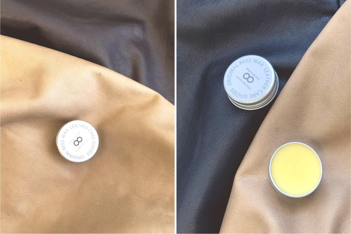 今回ご支援頂いた方全員に私たちが長年研究開発して品質を追求したBEESWAX(レザーケアワックス)をセットでお届けさせて頂きます。原材料は「蜜ろう」と「ホホバオイル」だけを使用した化学物質を一切含まない無添加のワックスです。手のひらになじませて革全体に塗布するだけで質感がよみがえります。