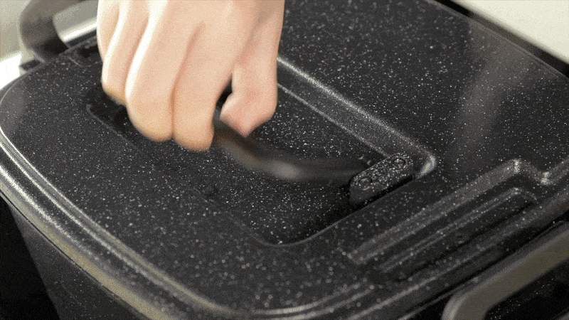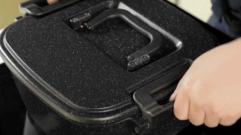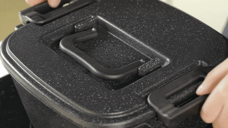 このような四角形にすることでLOCK機能を使用する際に圧力がかかるため、料理はより美味しく、保管はより簡単になります。