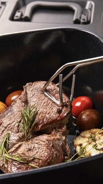 半圧力がかかり、熱の対流で肉も魚もすごくジューシーに仕上がります!
