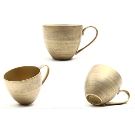 黄金の器 これは実際に焼きあがってきた器に18金を焼き付けいる作品になります。 はじめてこの、全面に金を塗る作品を作った時には「こんなの焼き物じゃない!」という批判の声が多かったのです。 あれから17年時が経ち、いまでは様々な作家やメーカーが真似をする人達が増えました。 私は真似はされてもいいと思ってます。なぜなら私より良い作品にはならないからです。 しかし、この金、銀を使うのが主流になってきたいま。 これが21世紀の代表する焼き方になったでしょう。16世紀の織部焼きのように。 陶芸家 青木良太