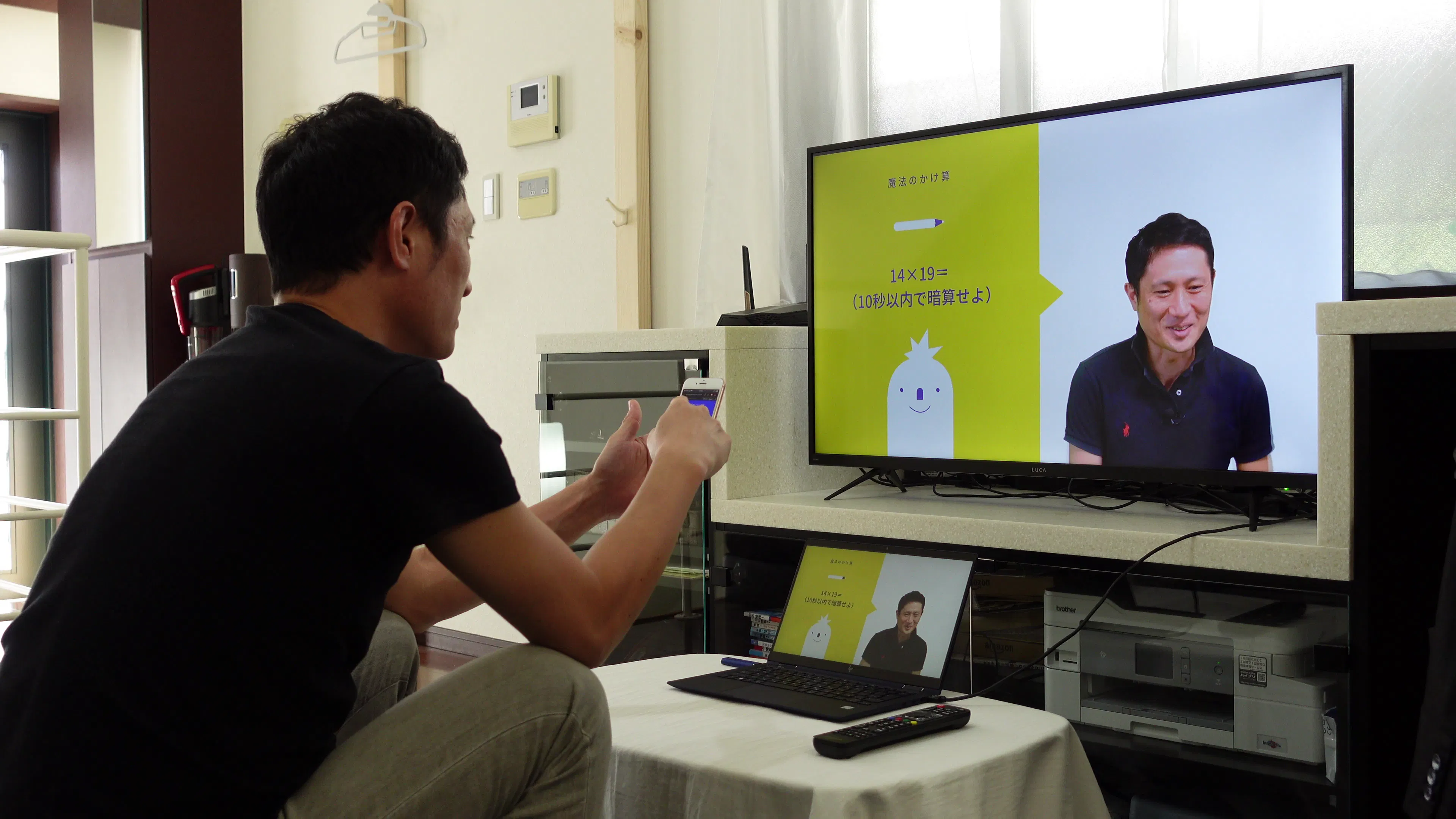 パソコンよりも大きなモニターを囲んでほしいので、なるべくリビングのTVモニターにパソコンから出力ください。