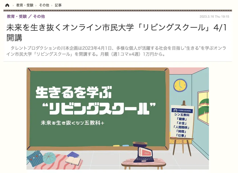 『リビングスクール(Living School)』創設