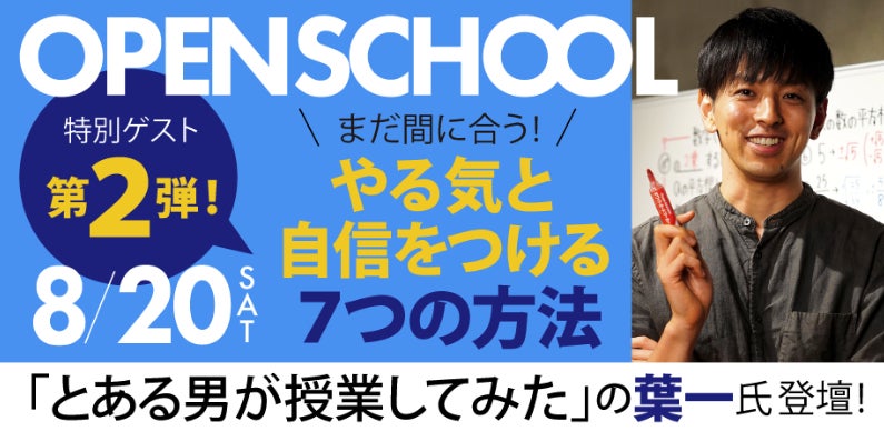夏休み終盤の宿題攻略法として、あの人気ユーチューバー「とある男が授業してみた」の葉一さんをゲストにむかえ、自宅学習での『やる気と自信をつける7つの方法』について無料授業を行います。