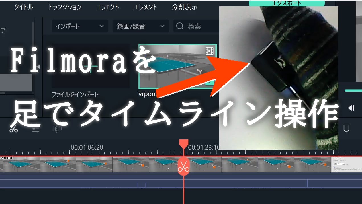 Filmoraを足でタイムライン操作
