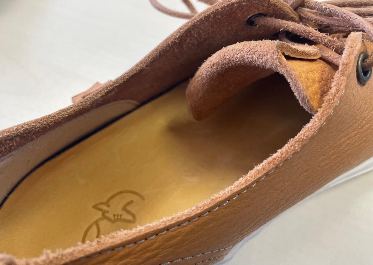 鹿革はレザーのカシミアといわれているほど柔らかい触感で、このインソールが素足で履けることの付加価値になっています。