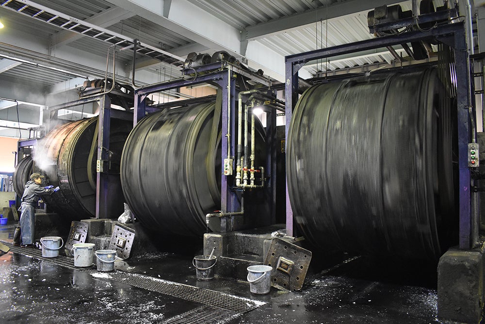 革を究極級に柔らかくする為に「鞣し(なめし)」に時間と手間をかけて、さらにドラムを使った加脂、空打ちといわれる工程は革を柔らかくするための重要な工程で納得のいくまで調整を繰り返すこと、またその後の特別な仕上げ工程で独特のモイスト感と柔らかさを生み出すことができました。