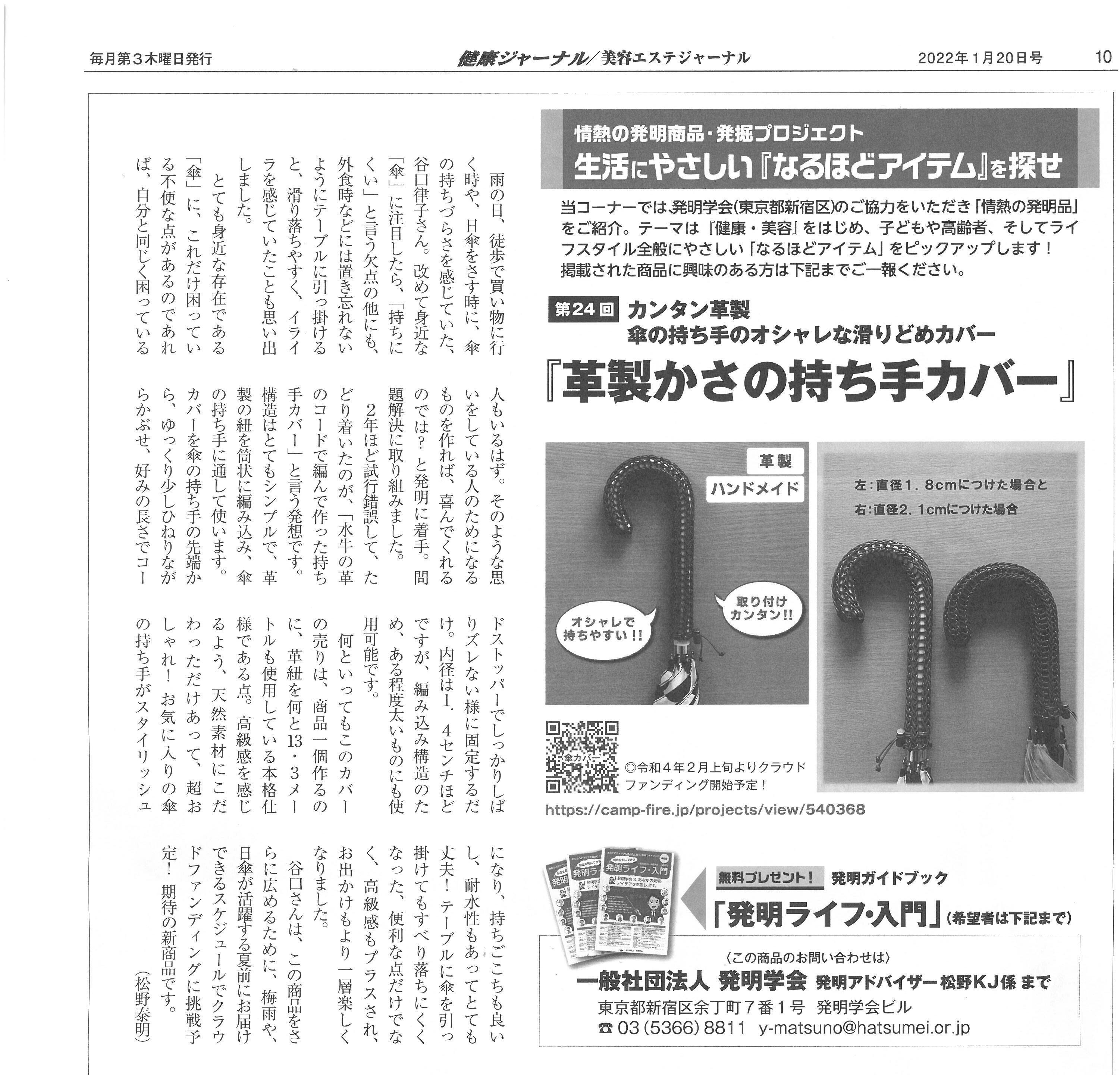 この傘の持ち手カバーですが、「健康ジャーナル」という業界紙で紹介されました。