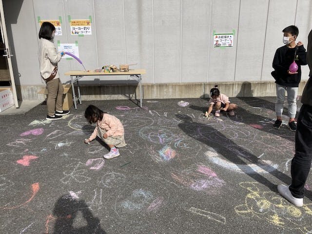 これは一例ですが、これまで「駄菓子みっけ」というイベントを催した際には、遊具の代わりにうちにたくさんある段ボールを積み木にして遊んだり、地面にチョークでお絵描きしたりするこどもたちの姿がありました。そんな風に、用意されたソフトではなく、訪れる子それぞれのアイデアでそこにあるものを用いて素朴な遊びの体験を重ねてもらえれば何よりです。