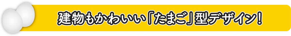 室内は約100㎡と小学校の教室1.5倍ほどの大きさで、4つの天窓から朝日が入ると室内が徐々に明るくなっていくようデザインされ、外壁が降りそそぐ光を浴びた時、建物のシルエットが立体的なたまごらしく浮かびあがります。