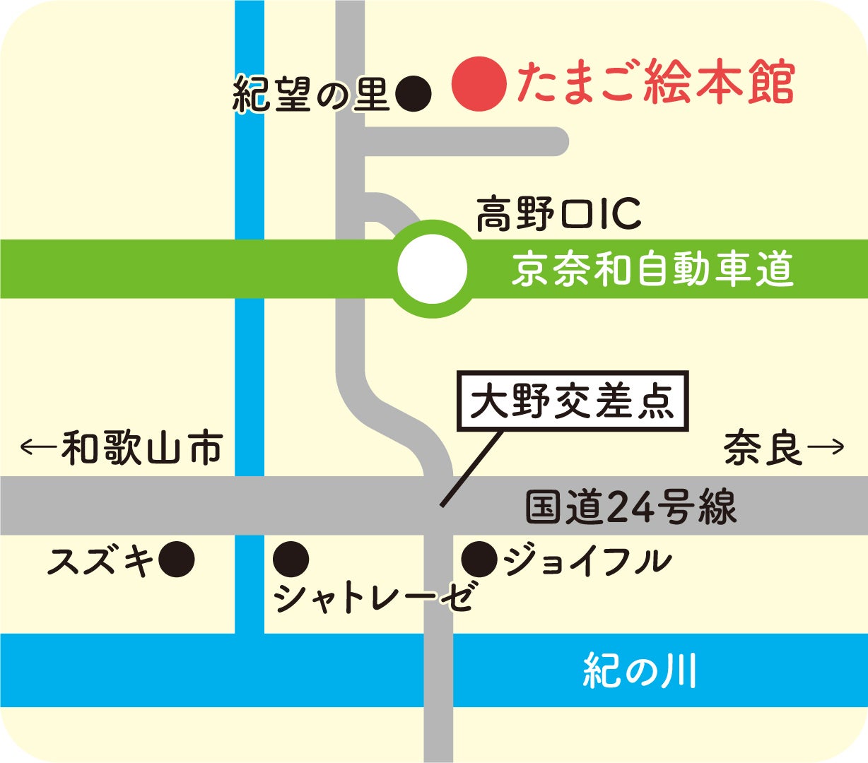 場所はオカザキ紀芳庵のすぐ隣。京名和自動車道高野口ICから車で2分とアクセスのよさは申し分なし。少し小高い場所にあることから静かでこどもたちが存分に遊んでもらえる立地です。ここを絵本に特化した空間として、絵本の常設だけでなく、特集企画を催したり、絵本作家の原画展や読み聞かせ、人形劇や紙芝居といったイベントも同時に行なっていくことで、子どもたちの「夢のたまご」を育て、コミュニケーションの輪を広げるさまざまな「体験」を計画する予定です。