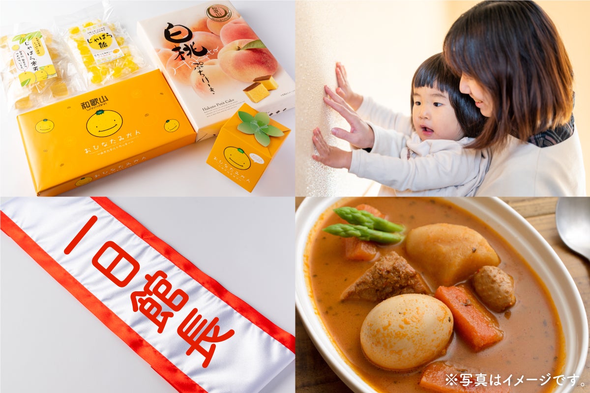 リターンには、ただただ応援したいと言ってくれる方への心のこもったお礼メールから、オカザキ紀芳庵で製造する自慢の和歌山名物セット、そして絵本館の壁に漆喰を塗ったり窓に絵を描いたりといった絵本館を一緒に作っていただくものや1日こども館長、プレイベントへのご招待など魅力的な内容を取り揃えております。