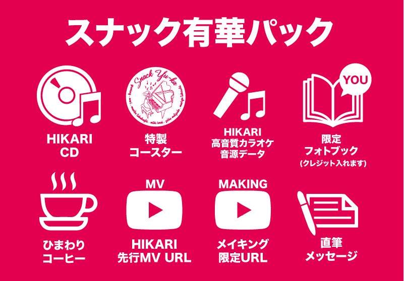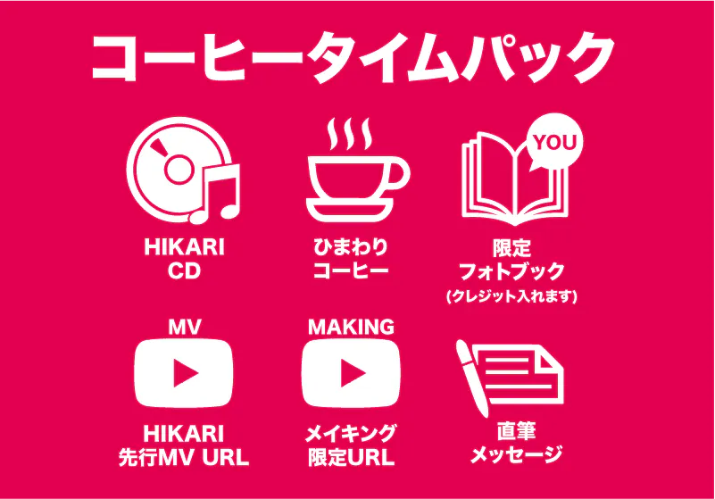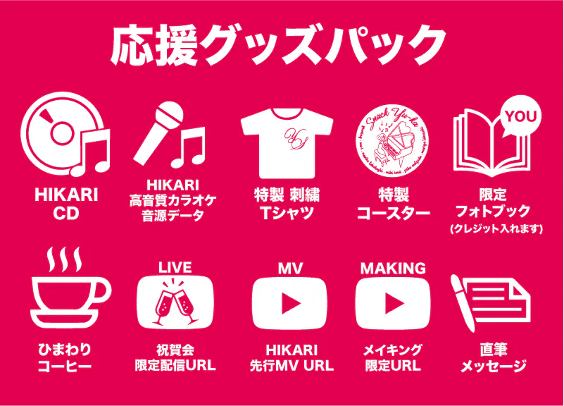 支援金は音源・CD制作、ライブ開催、ミュージックビデオ制作、リターンフォトブックの費用として活用させていただきます。