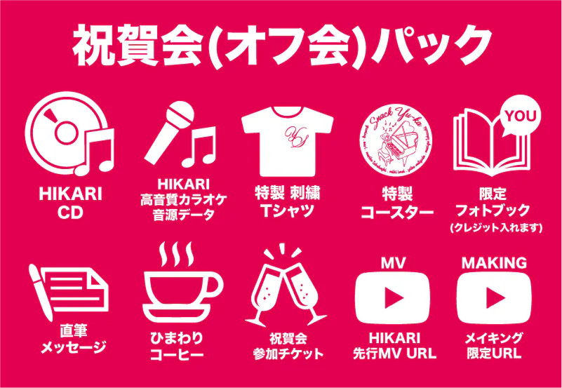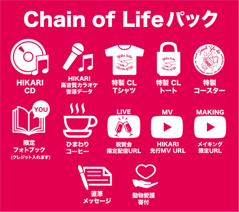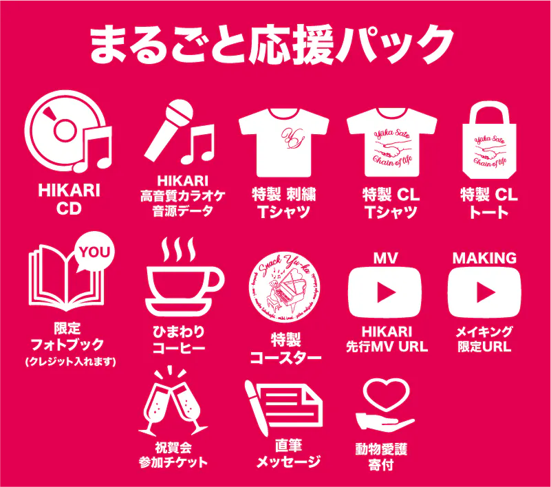 ※リターンの制作楽曲、写真、映像などの著作権、原盤権等の権利はすべて実行者の佐藤有華に帰属します。