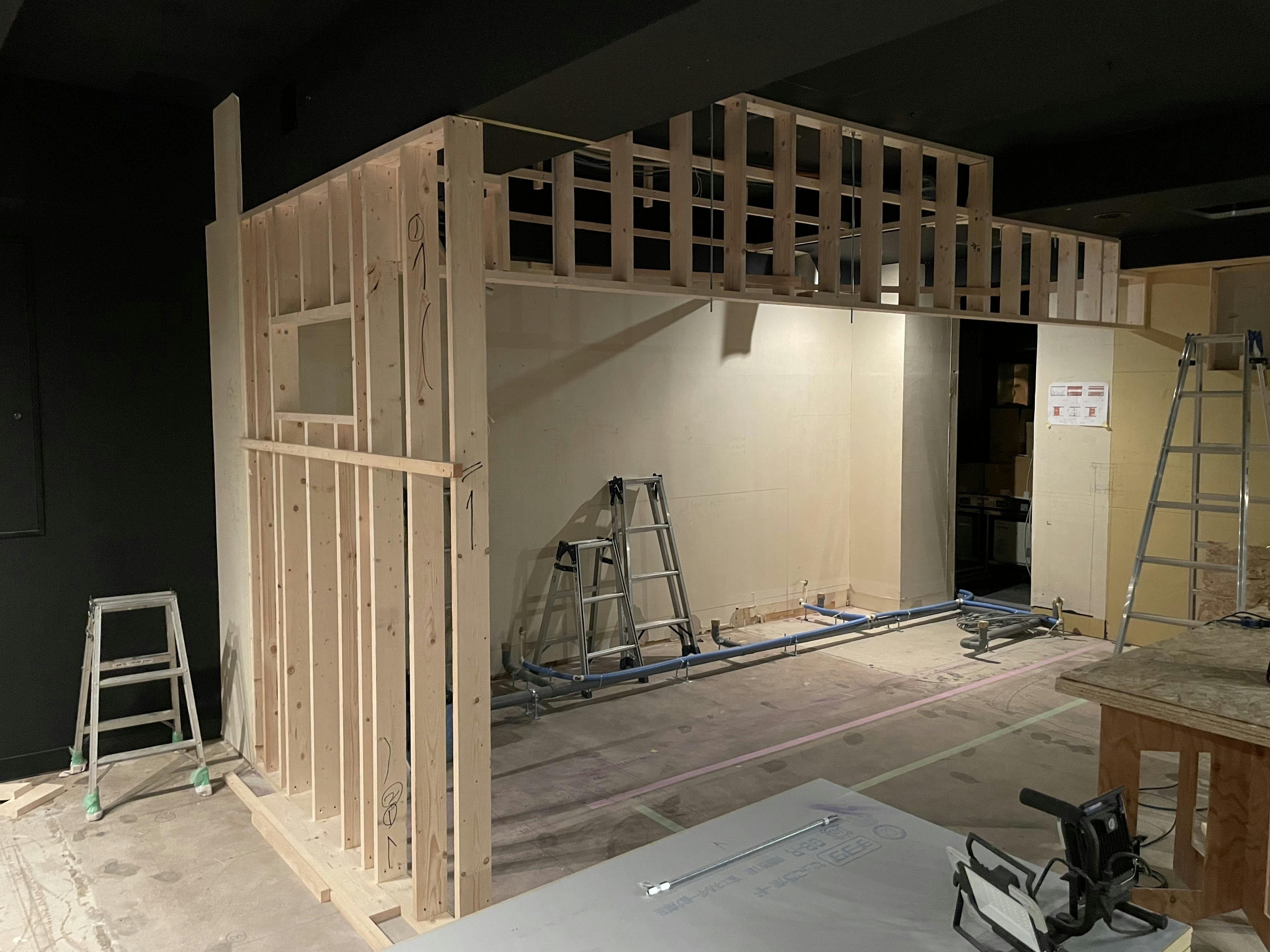 解体工事も終わりまして、ついにカウンター造作がスタートしております!!
