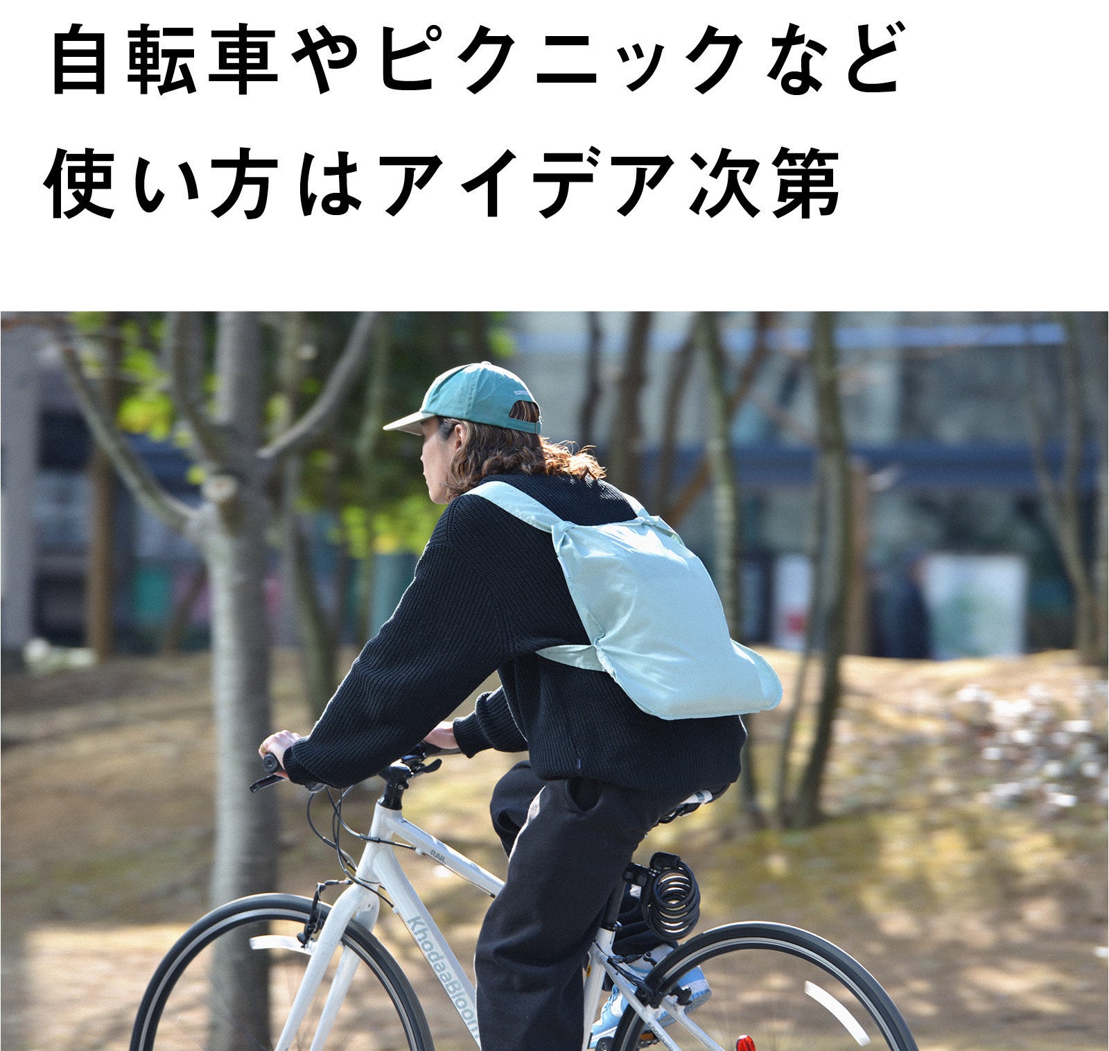 何しろこのバッグのアイデアは自転車で荷物を便利に運びたいというところからスタートしています。だから自転車との相性も抜群。
