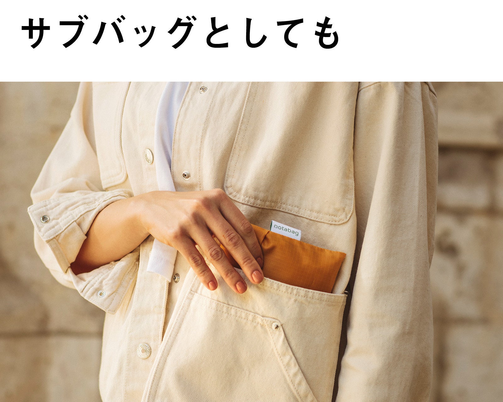 普段から持ち歩くようにするというのが、Notabagのスマートな使い方。出先で荷物が増えるような時はこのバッグを持っていれば大活躍することは間違いありません。