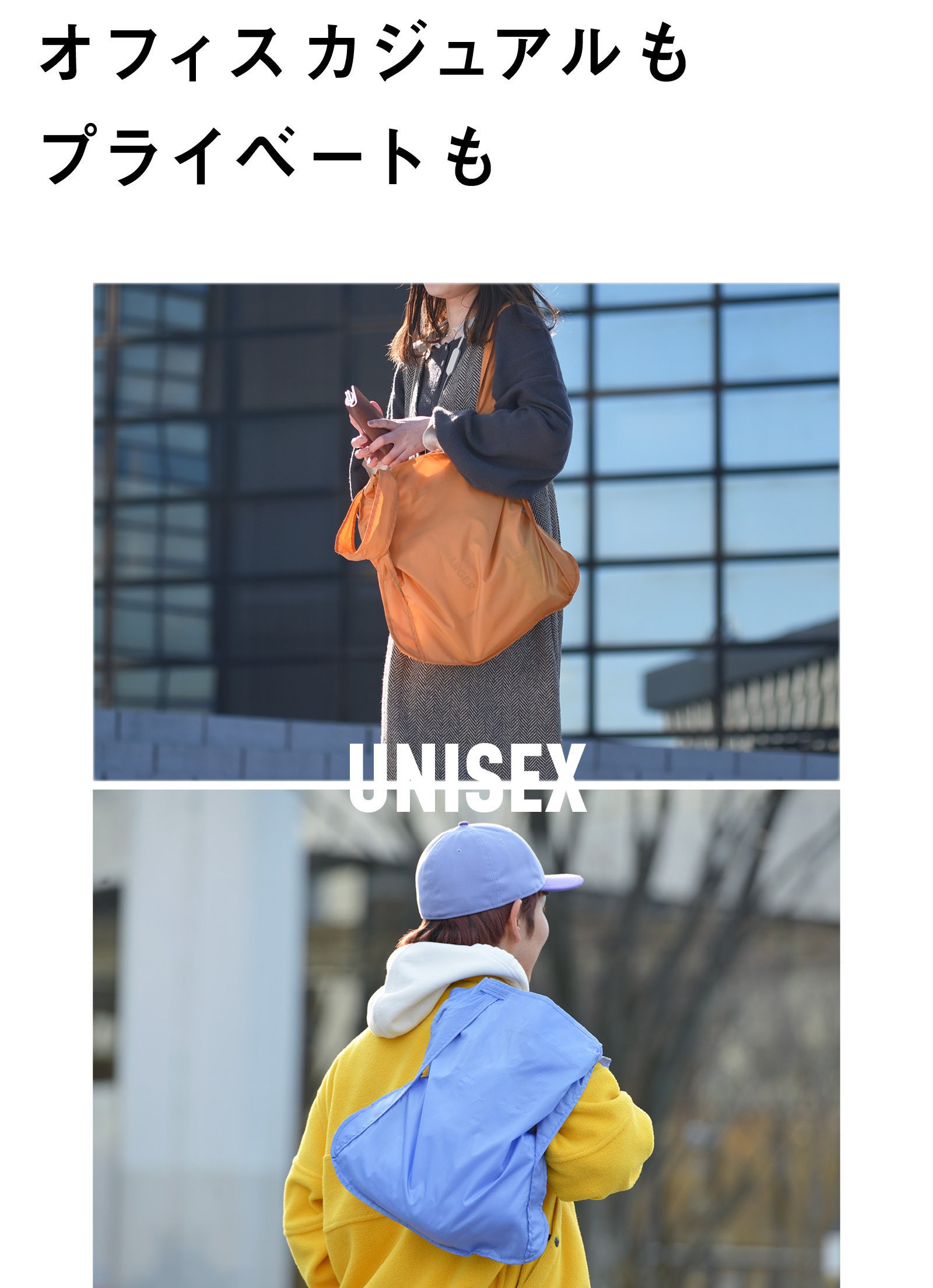 服装やシーンを問わず、男女どちらが使っても違和感がないユニセックスデザインです。