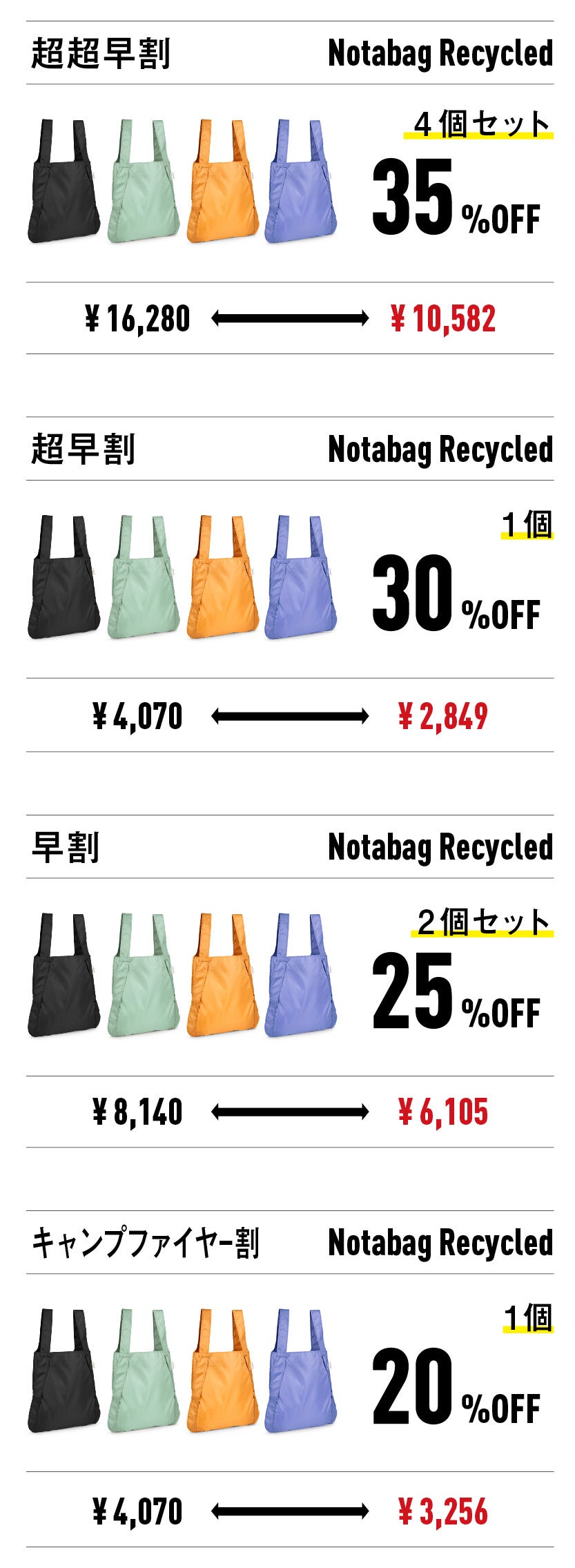 重い荷物を運ばなければいけない時は憂鬱なものですが、Notabagをいくつか用意しておけば、荷物を運ぶ時間も楽しくなるかもしれません。
