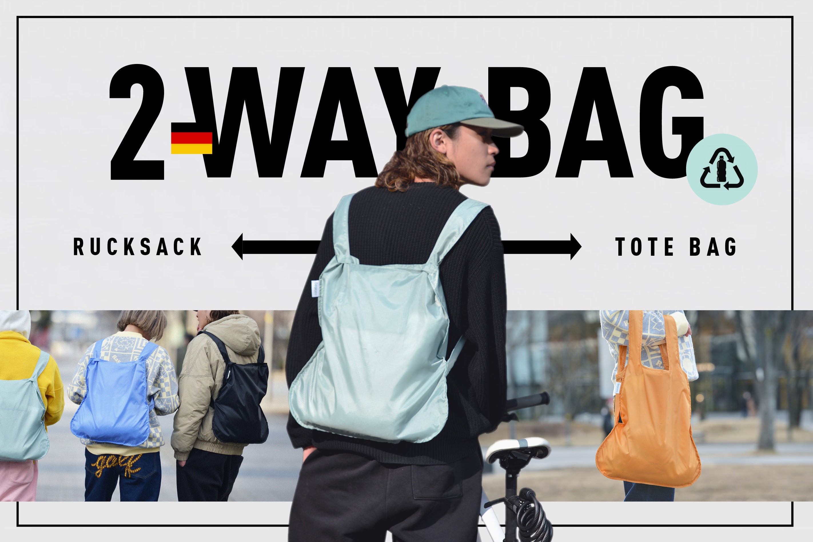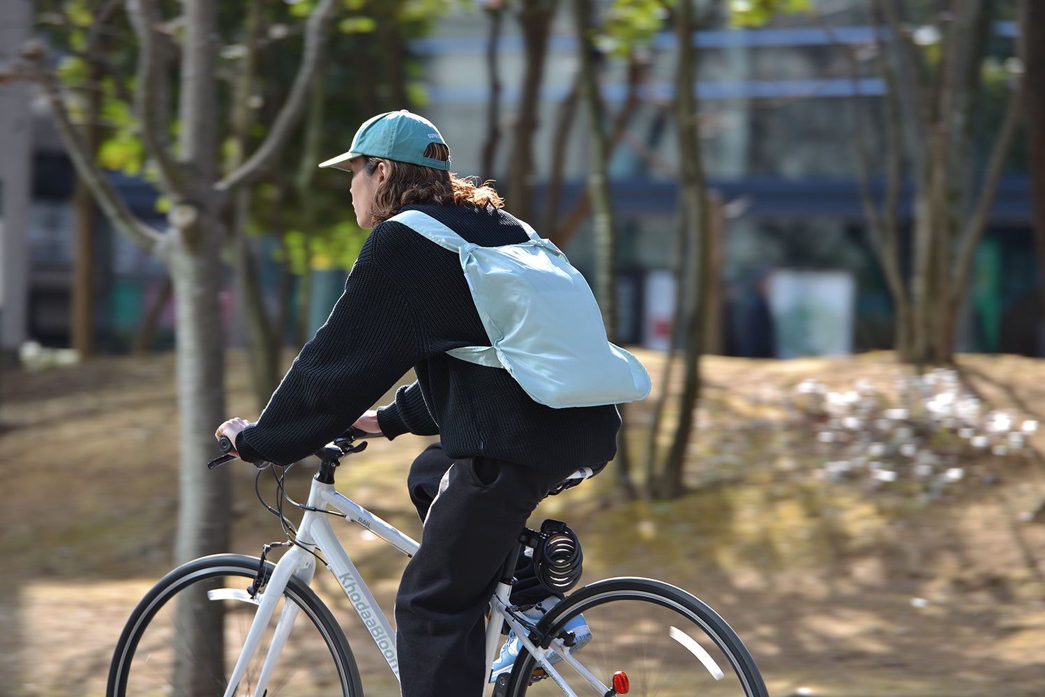 また混雑する都市交通での困った経験は何ともやっかいな出来事でした。私は、ハンドルに提げた重たい買い物バッグを前輪にぶつけながら自転車を運転しようとしました。バックパックだったなら、せめて買い物バッグを肩にかけられていたら、と願わずにはいられませんでした。その瞬間、シンプルなバッグがバックパックへと変容する様が浮かんだのです。